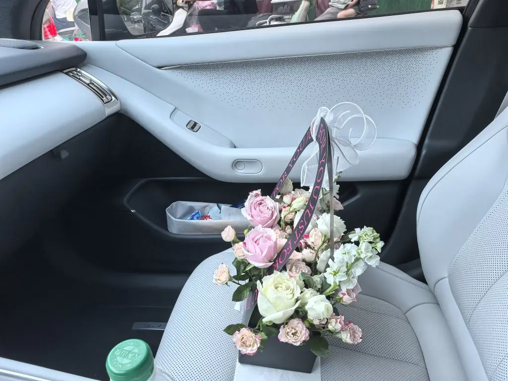 每次坐进我的小鹏,副驾的那束玫瑰总在提醒我,浪漫从来不是刻意的仪式,而是藏在日常里的细碎温柔。