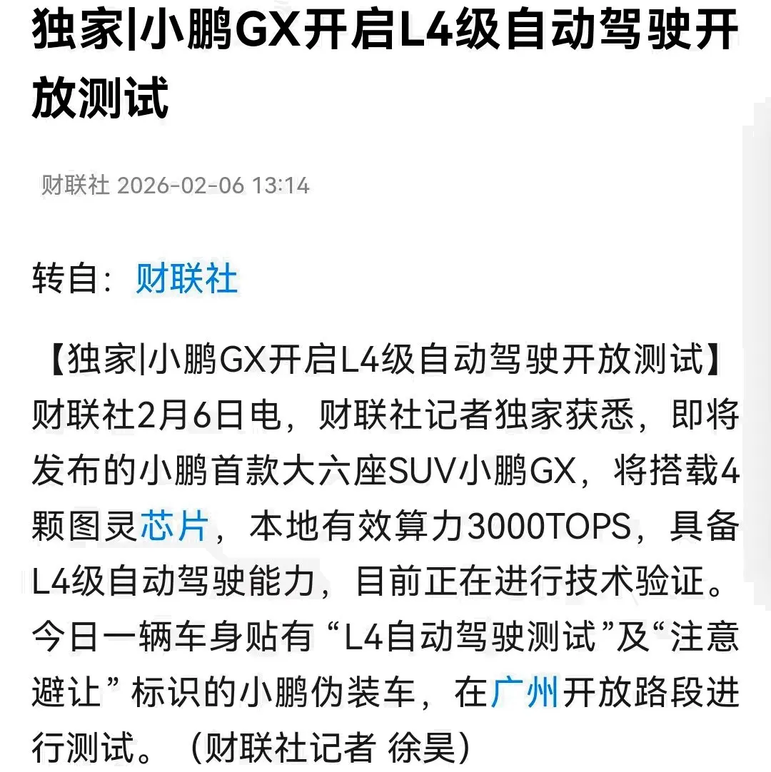 小鹏GX的L4级自动驾驶开放测试