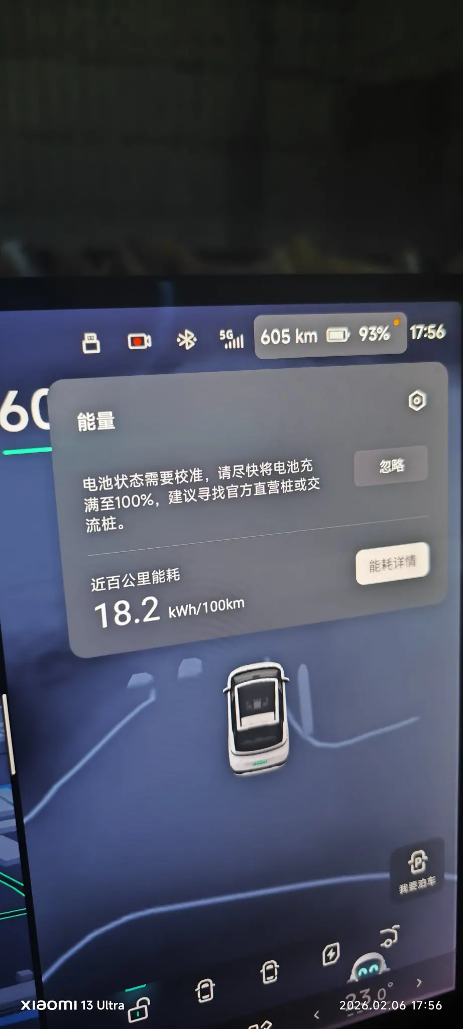 今日2月6日17:55发现电量右上角有个红点昨日以及今日早晨均未曾注意到是否有提示点开后如图所示近三次充电日期及续航:1月23日,续航从225充到650(满电100%)1月28日,续航从290充到6132月5日,续航从301充到630居然这么贴心提示我尽快充到100%以校准电池状态🤪