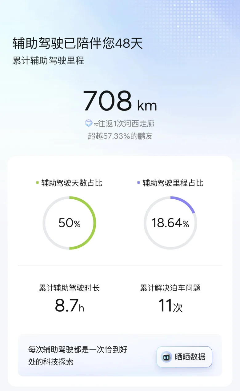 买车一个月,开了4000公里,开着小鹏出行,真的太方便了,NGP非常好用,智驾一个月跑700公里。省心又舒适。