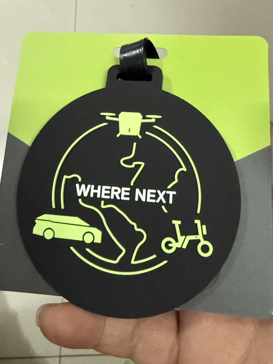 小鹏送的行李牌到了,上面有X9、汇天飞行汽车、碳纤维电动助力车。