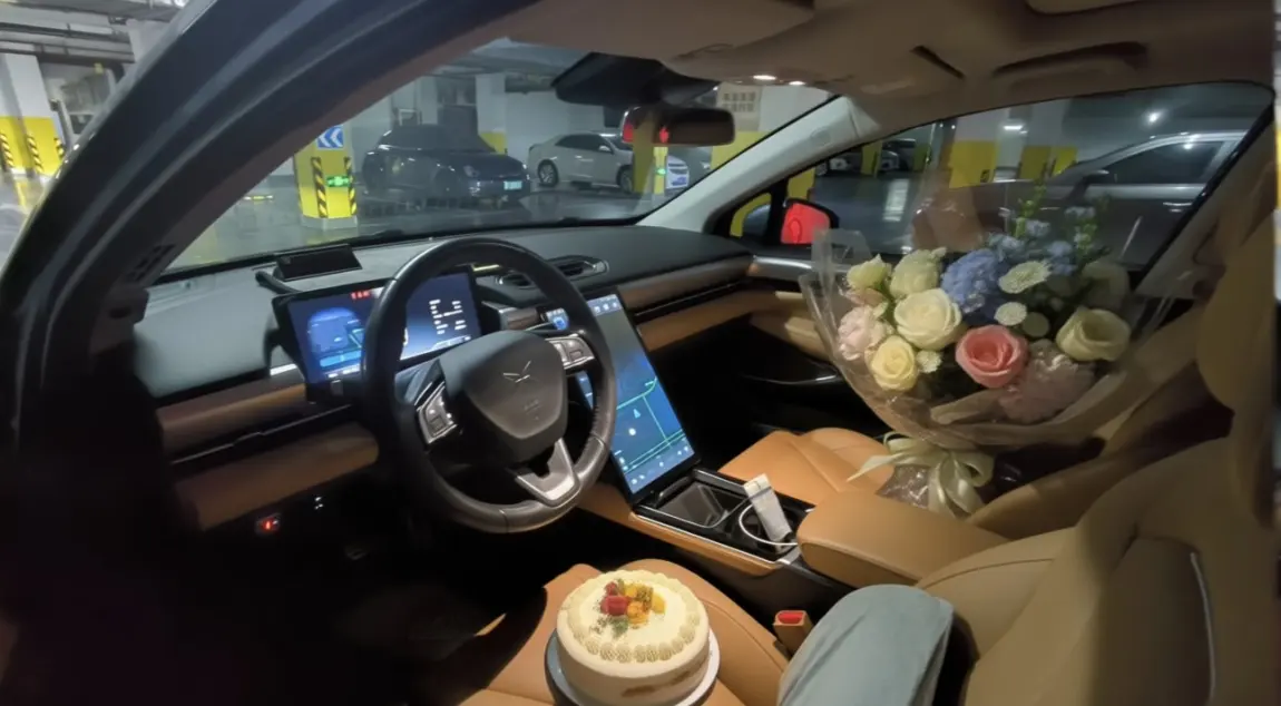 #藏在车生活里的浪漫# 午后的阳光斜斜地洒进小鹏的驾驶舱,才惊觉今天是我们相识的特别日子。副驾上那束混着蓝绣球的玫瑰,是特意绕路去花店取的,花瓣上还沾着午后的露水,混着车内淡淡的皮革香气,莫名让人安心。充电时总爱买袋糖炒栗子,热乎乎的壳一捏就裂,金黄的果肉甜糯得刚好。屏幕显示电量从20%跳到100%,手里的栗子也剥了一小堆,车窗外的路灯一盏盏亮起来,像星星落在了玻璃上。