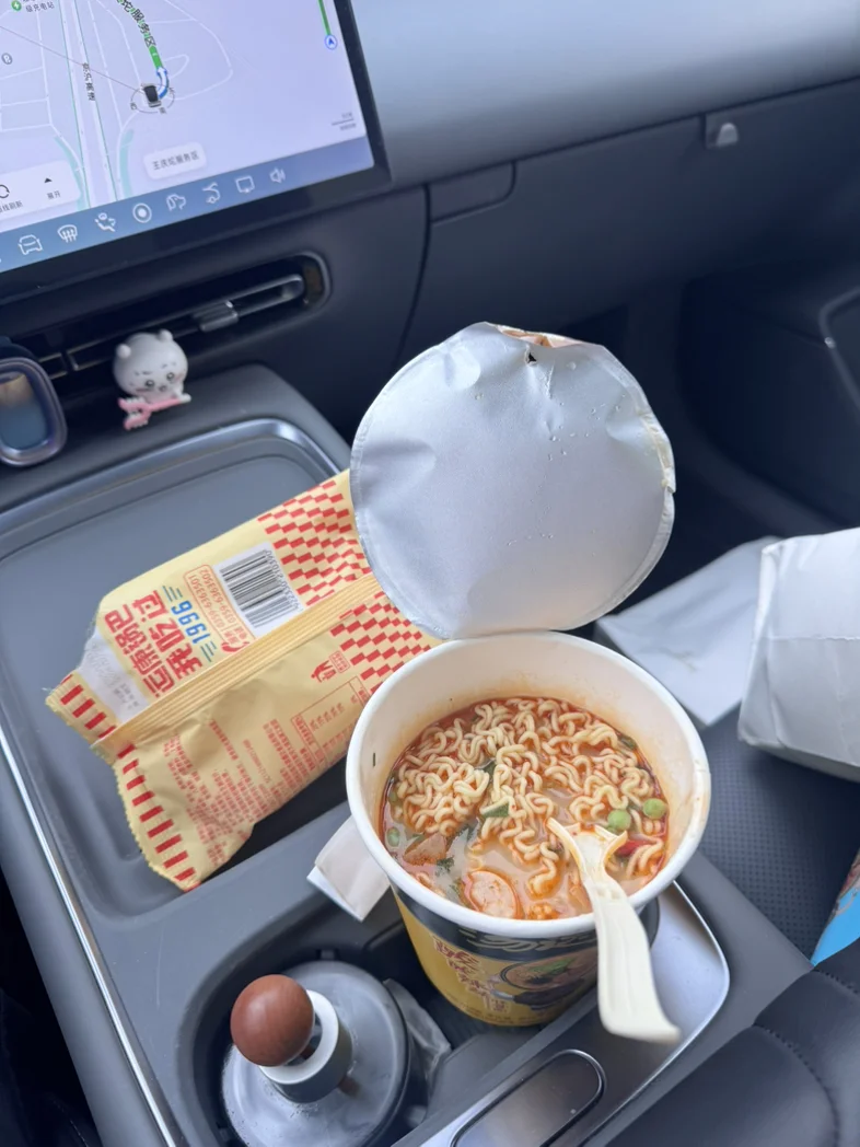 又是一年归乡时,这次陪伴我的,还是小鹏P7+。虽然昨天回老家出了点意外撞车了,但好在人没事,车子也送去维修了,年前应该能尽早取回来。随手分享几张过年回家路上的一些剪影,其中包括:图1-后备箱装的东西随手拍(依旧空间怪兽)图2-高速上充电时煮的泡面(放起来刚刚好)图3-去小鹏售后店检修的时候顺带看了看新P7图4-公司年会上拍的照片(祝大家马上暴富)图5-回老家路上的雪山图6-下高速后看到的山、云、烟#开着小鹏回家过年#