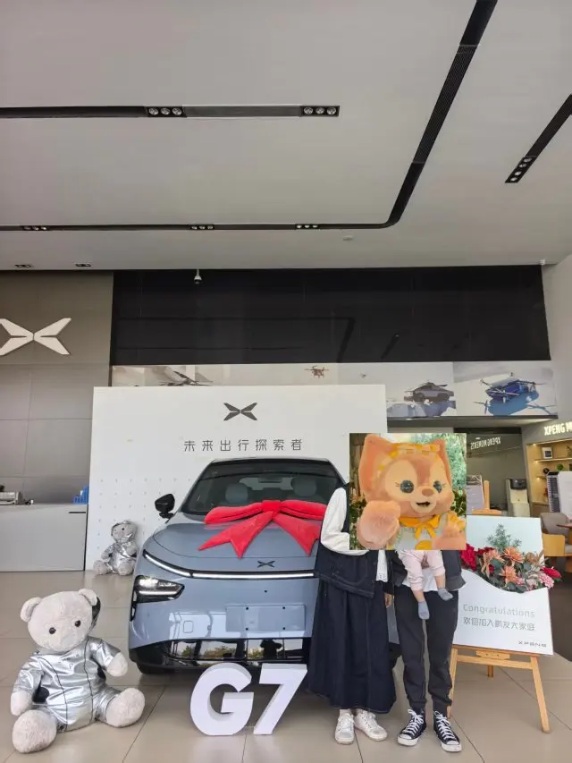 第一次见到小鹏G7,是在一个阳光明媚的周末。灰蓝色的车身在阳光下泛着高级的金属光泽,溜背造型搭配无框电吸门,既有轿跑的优雅,又不失SUV的稳重。销售顾问介绍,这是2025款702 Ultra版,搭载2250TOPS算力的图灵AI芯片和全场景智驾系统,光是这些参数就让我心跳加速。全车Nappa真皮座椅、256色氛围灯、20扬声器音响……坐进车内,仿佛置身未来科技馆,连空气都弥漫着“智能”的味道。