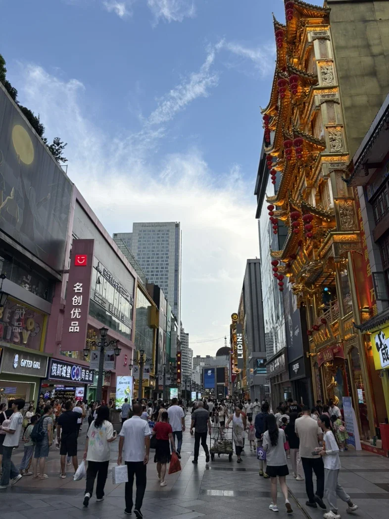 下午逛宽窄巷子,青瓦灰墙,老院新铺,既能看川西民居的韵味,也能感受热闹的市井气息,随手拍几张照片,都很有氛围感。傍晚去太古里、春熙路,打卡爬墙熊猫,看城市繁华灯火,感受现代成都的时尚活力。天黑后去九眼桥,吹吹府南河的风,看夜景流光溢彩,一天的疲惫都被吹散。