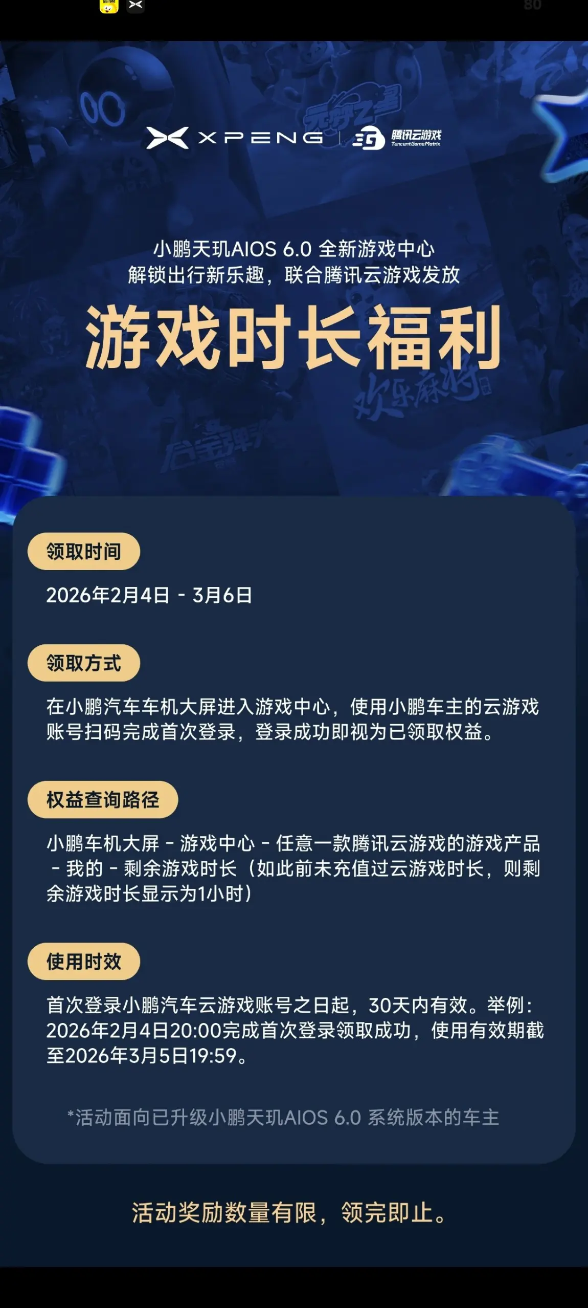 新春这里有两个福利,小鹏车主可不要忘记领取哦