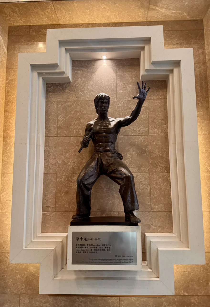 我们依次参观了各个展厅,了解顺德的历史文化、民俗风情与艺术藏品。其中给我留下印象最深之一的是李小龙展厅,展厅内展示了与李小龙相关的资料、影像与实物,记录了他的生平经历与武术成就,内容详实,让人直观感受到李小龙的影响力。