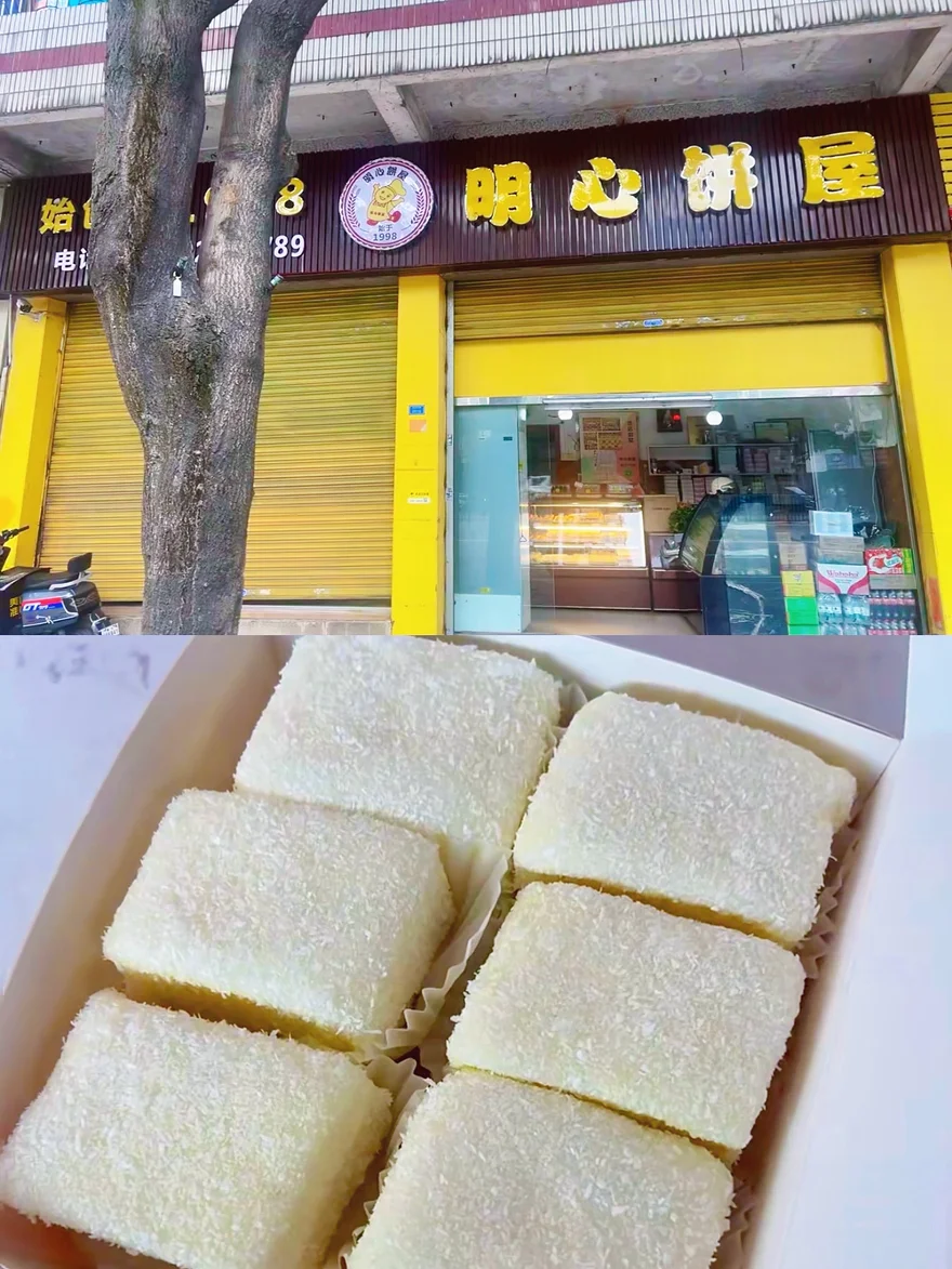 逛完顺德博物馆,我们直接去了当地很有名的明心饼屋。我点了店里的糯米糍蛋糕,外层是一层薄椰蓉糯米糍,里面包着蛋糕。咬下去口感软糯,还能拉丝,几乎吃不出里面有蛋糕。整体口感湿润,内部蓬松,味道和口感都很不错。作为顺德行程里的小甜品,28元的价格实惠,是值得一试的本地小吃。