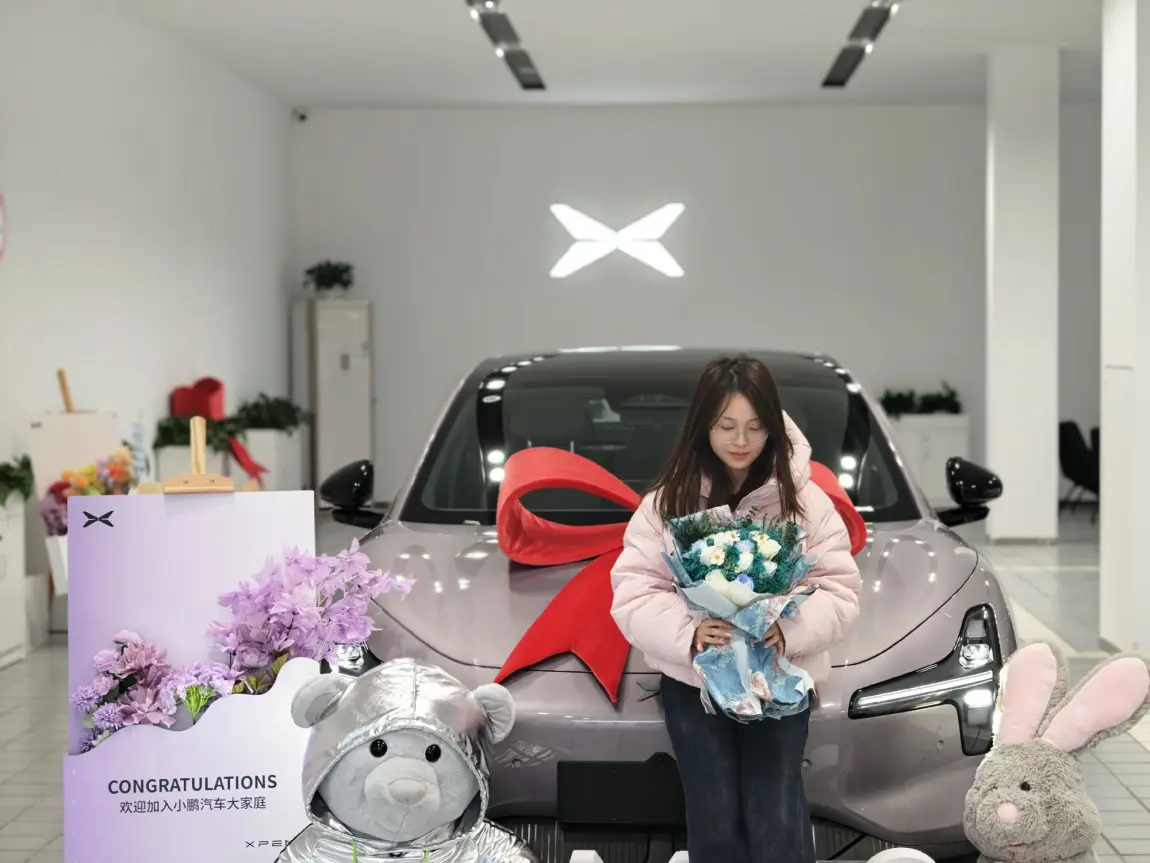 紫色外观紫色内饰真的很好看!从选店、下单到提车就花了3天的时间!小鹏办事效率很高!从此加入鹏友大家庭!