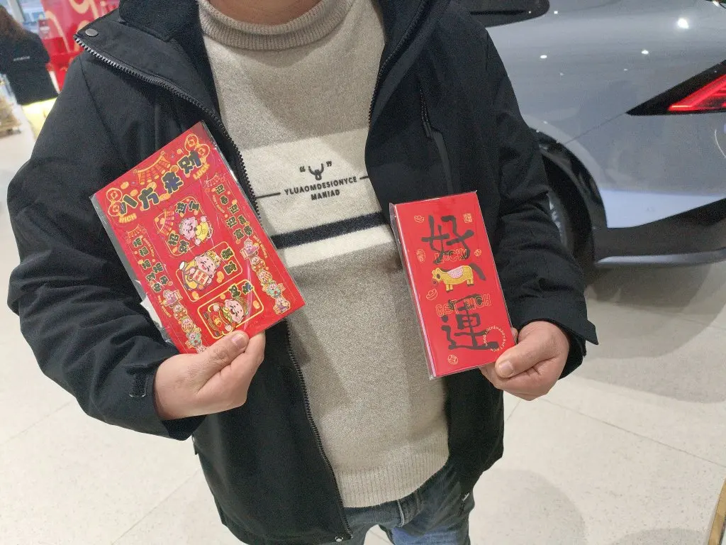 开着小鹏回家过年# #春节服务不打烊#小鹏汽车过年前车辆需要检查一下,跟衡阳小鹏售后服务顾问小陈约了时间过去检查。小陈热情接待,礼貌有节。车辆接待好,及时安排技师全面检查轮胎气压,底盘,机舱,尾箱等等。检查很全面很到位。很意外还给我准备了小礼物,小惊喜。红红火火的红包🧧袋和贴纸。正好我走亲戚朋友需要红包🧧袋子。很暖心的小惊喜。赞👍🏻👍🏻👍🏻衡阳小鹏很优秀,服务很贴心。值得表扬。特别是服务顾问小陈。热情阳光。#开着小鹏回家过年# #今日随手拍#