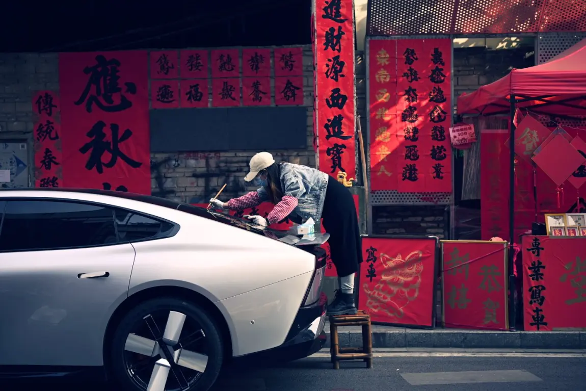 开着小鹏P7冲佛山筷子街,用上新买的镜头,直接拍出新年氛围感大片🎆给新P7写了一幅挥春,然后用我新买的镜头拍了点照片!😌技术有限,但感觉怎么拍都好!P7的颜值真的太帅啦!!赛博科幻车身撞黑红鎏金新春景,写上金色挥春,色彩对冲感拉满,路过的人都忍不住围观打卡📸低趴轿跑姿态配骑楼挥春墙,无框车门一开氛围感直接拿捏,拍出来的质感绝了!@社区活动小姐姐 @鹏友大管家 #开着小鹏回家过年# #鹏友新春时刻# #藏在车生活里的浪漫#