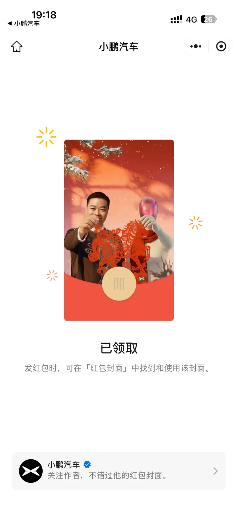# 开着小鹏回家过年# 领取到了马年红包封面,马上成功!