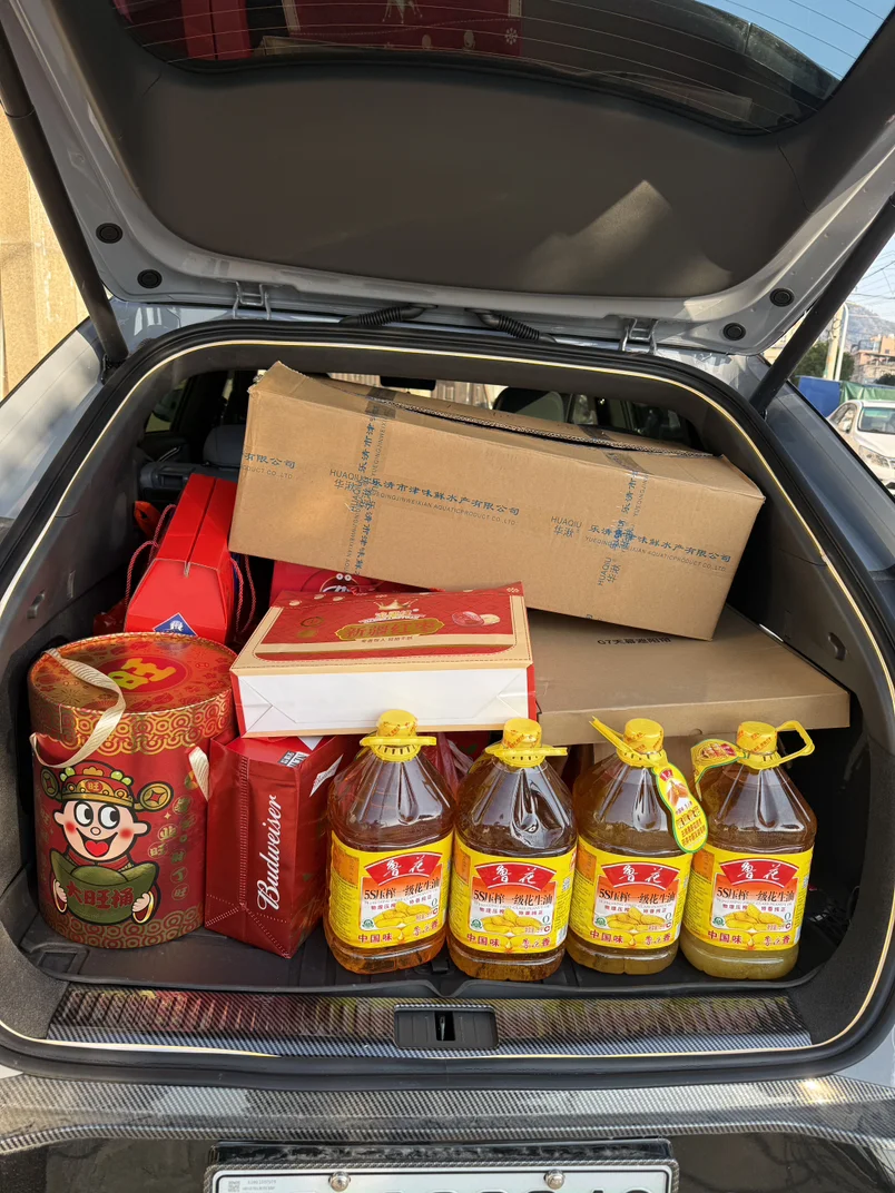 开小鹏g7,走亲访友送礼,年货礼物一车拉满,后备箱直接承包全场,能装又省心,转眼又是一年,祝鹏友们马年大吉,财源滚滚。