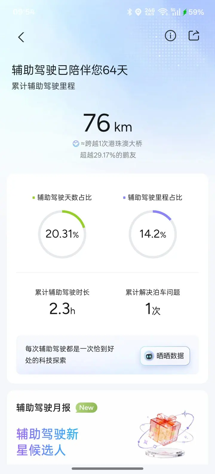 自从去年12月提车以来,我从刚开始的心理上无法克服恐惧去使用辅助驾驶,到现在图1的每天上下班高度依赖辅助驾驶,心理上可以说是发生了很大的改变。由于以前开了10多年油车,没有习惯说汽车可以自动开车。但是一次次大胆的尝试,从短距离到长距离长时间,是小鹏让我克服了这一点,一步一步逐渐建立起来了信任。当然也和小鹏智驾的逐渐进步是分不开的。虽然提车才2个月,但是从一开始,我上班路上有个铁路道口,上面画满了交叉线,12月份版本到这里会急刹车,而现在的版本已经是可以丝滑开过去了。人和机器之间的信任也是逐步建立。就在昨天晚上又更新了一版,感觉又更好用了。我想,等vla2.0发布之后,小鹏应该是可以算辅助驾驶第一了。