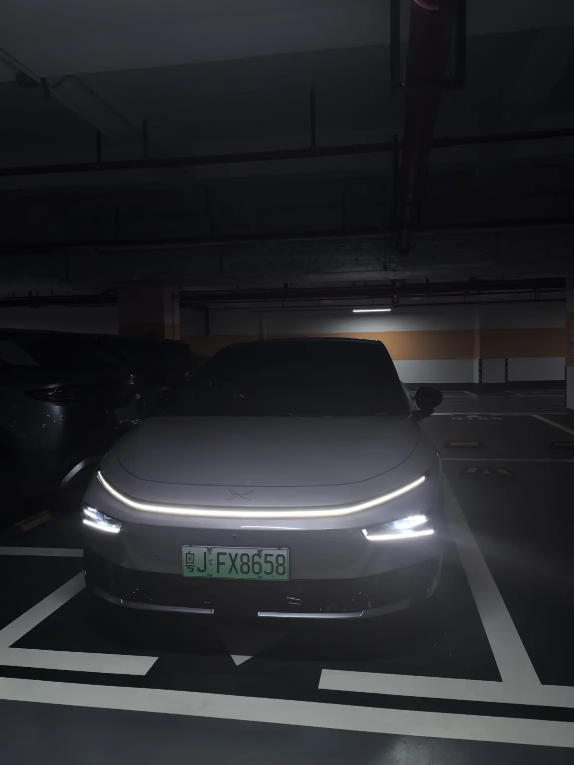 深夜加班回家,地库的灯光有点暗,本来还在担心停车。