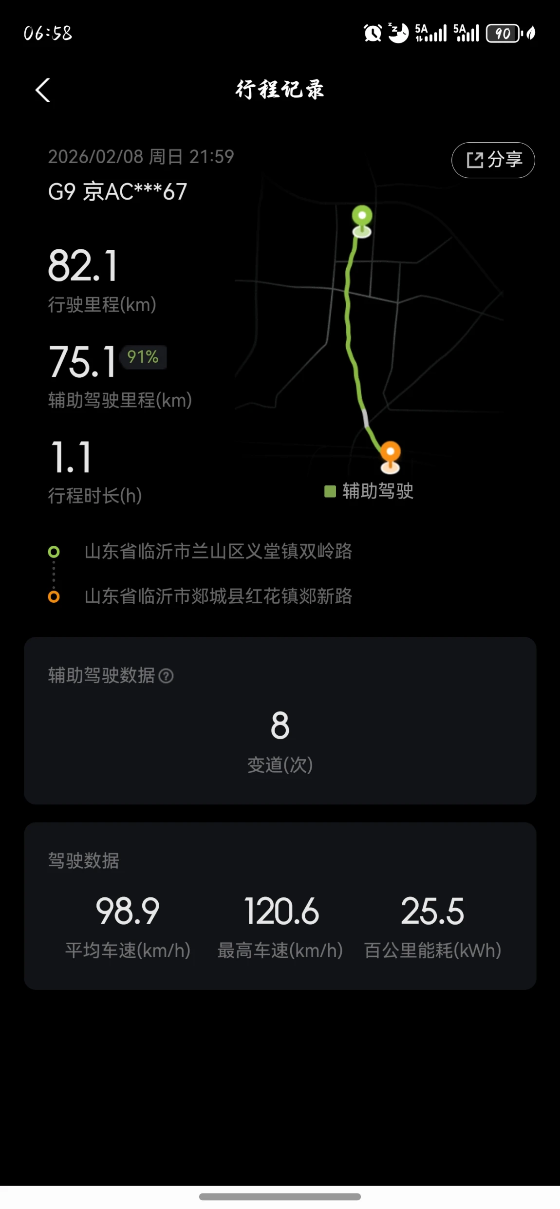 3.深夜高速,它是我的安心守护夜里视线不好,我本来还有点担心。结果从临沂到郯城的82.1公里,91%都是它在开。车道保持稳稳的,车距控制得恰到好处,连远处的反光牌都能清晰识别。深夜的高速上,有它在,我心里踏实多了。