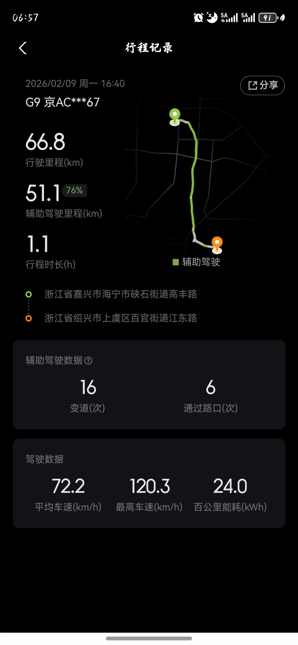 4. 跨省千里,它一路无缝衔接从山东到江苏,再到浙江,近500公里的跨省路,不管是高速、快速路还是普通道路,它都能无缝切换,辅助驾驶占比始终保持在75%以上。从郯城到宝应,从无锡到嘉兴,再到绍兴,它就像个不知疲倦的伙伴,一路稳稳护送我到家。