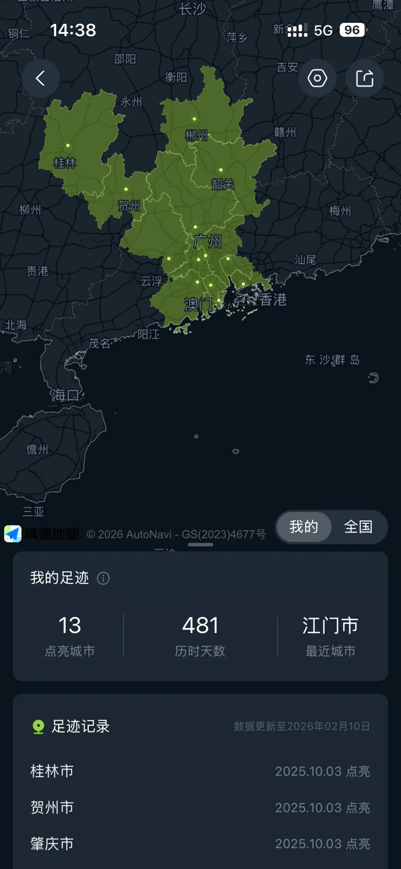 我的出行足迹遍布13座城市,历时481天,最近一次点亮的城市是江门。从桂林到贺州,从肇庆到广州,每一段旅程都有小鹏的陪伴。记得去年10月3日,我开着小鹏从江门出发,一路向南,途经珠海、澳门,最终抵达香港。在广珠西线高速上,我全程开启辅助驾驶,不仅缓解了长途驾驶的疲劳,还能更专注地欣赏沿途的风景。当车辆自动跟车、变道、超车时,那种科技带来的安全感和便捷感,让我对未来出行充满了期待。