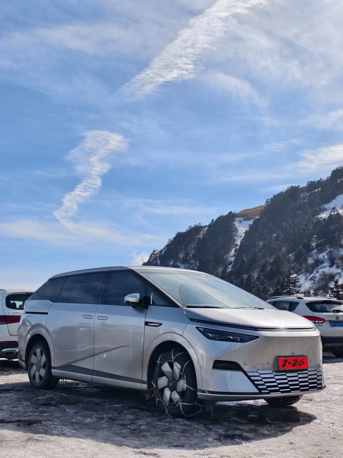 提前做足功课,装上防滑链,搭配X9的冰雪稳行系统,全程稳稳当当,雪地抓地力超在线,完全没掉链子;续航也很扎实,长途自驾没有一点焦虑感。
