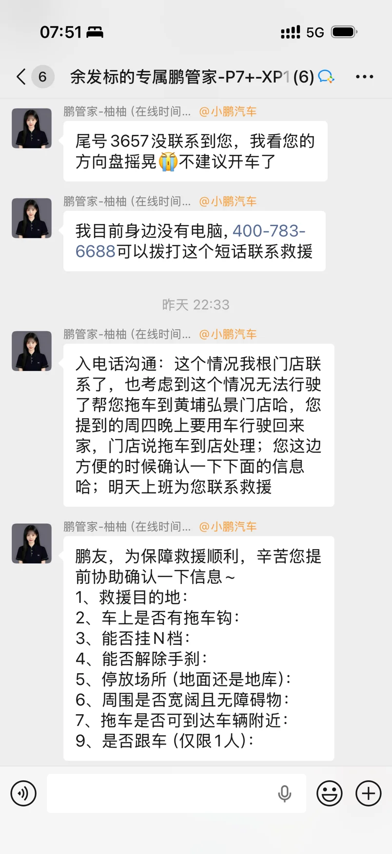 🚗 新春守护,一路有我各位的鹏友,新春佳节,当您在路上遇到小状况时,请别担心,小鹏的守护一直都在。我们的春节服务拖车随时待命,专业团队马不停蹄为您解决难题,让您的团圆路畅通无阻。愿您新的一年,如骏马奔腾,平安顺遂,万事如意。贴别感谢我的鹏管家-柚柚!#春节服务不打烊 #开着小鹏回家过年# #小鹏汽车#
