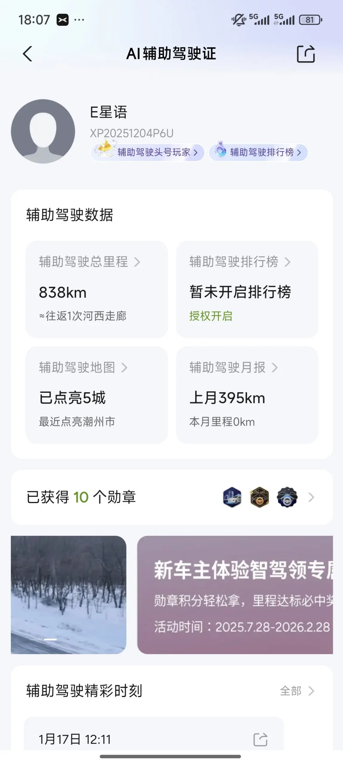 从广州回潮州,全车410km,高速基本都是智驾,时速大约100km,满电出发,回到家大约剩60km,中间不需要充电,这就是我为啥置换小鹏的原因。