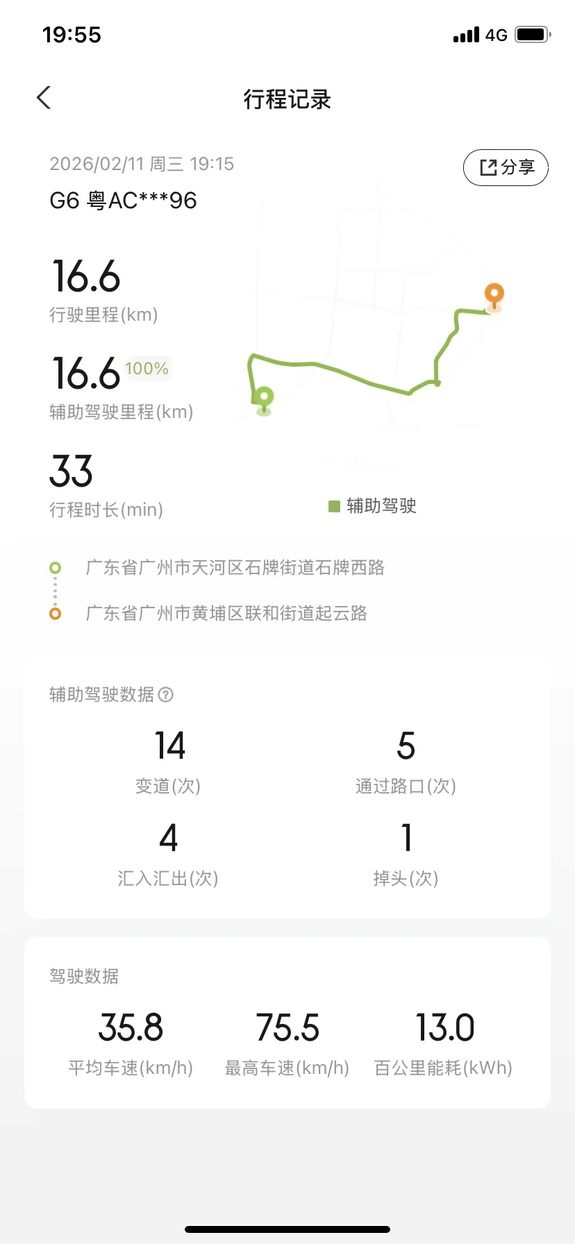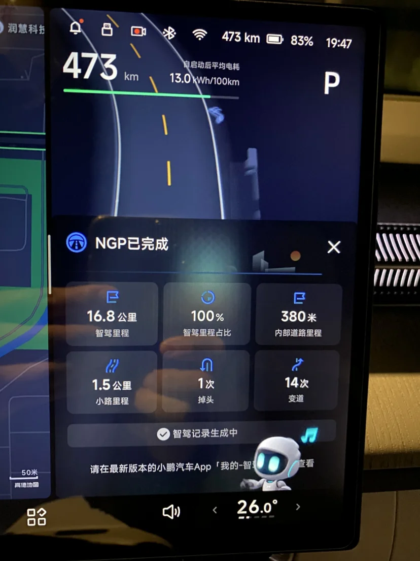 #我的辅助驾驶高光时刻# #开着小鹏回家过年# NGP高光时刻当然是智能辅助驾驶占比100%的时刻,挑战的可是难度最大的广园快速路,能在新手惧怕的广园快速0接管,只能说NGP已经到了炉火纯青的境界了!自从人机共驾上线,上下班两点一线,导航一开,NGP档杆一拨,就从容出发,通勤16公里再也没有以前油车时的疲惫,换来的是电车的静谧与智驾的安稳舒心,这才是科技平权的真正意义吧!今天也巧,遇到了小鹏GX在广园快速进行L4测试,从外观来看很酷!希望小鹏智能辅助驾驶能做得越来越好,也很期待L4时代的到来!