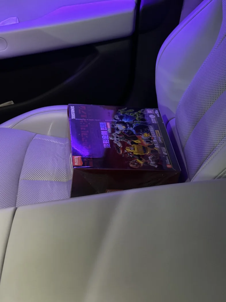 今年冬天,我找了好久,同城买了一盒绝版第一弹端盒,把一整套布鲁可变形金刚塞进了小鹏P7+的副驾储物盒。到家已是天黑,儿子迎接我回来,当他打开副驾的盒子,看到那一个个印着变形金刚logo的盲盒时,眼睛瞬间亮了,像个拿到糖果的孩子。