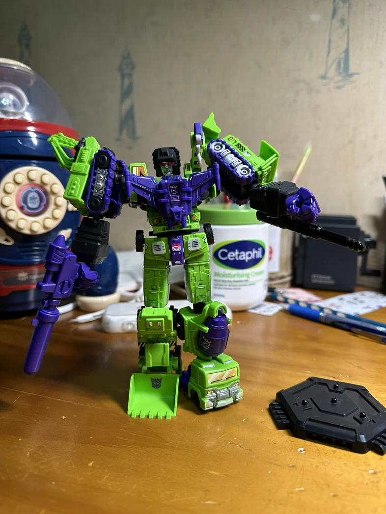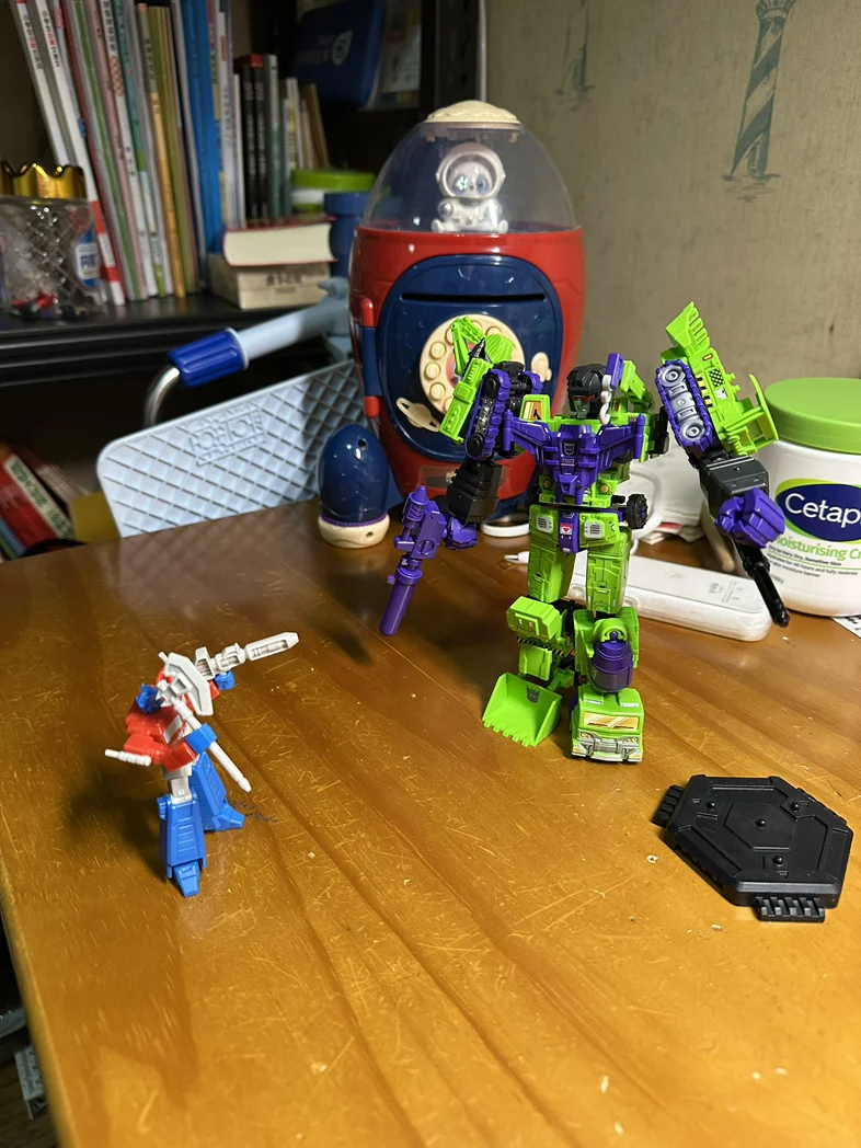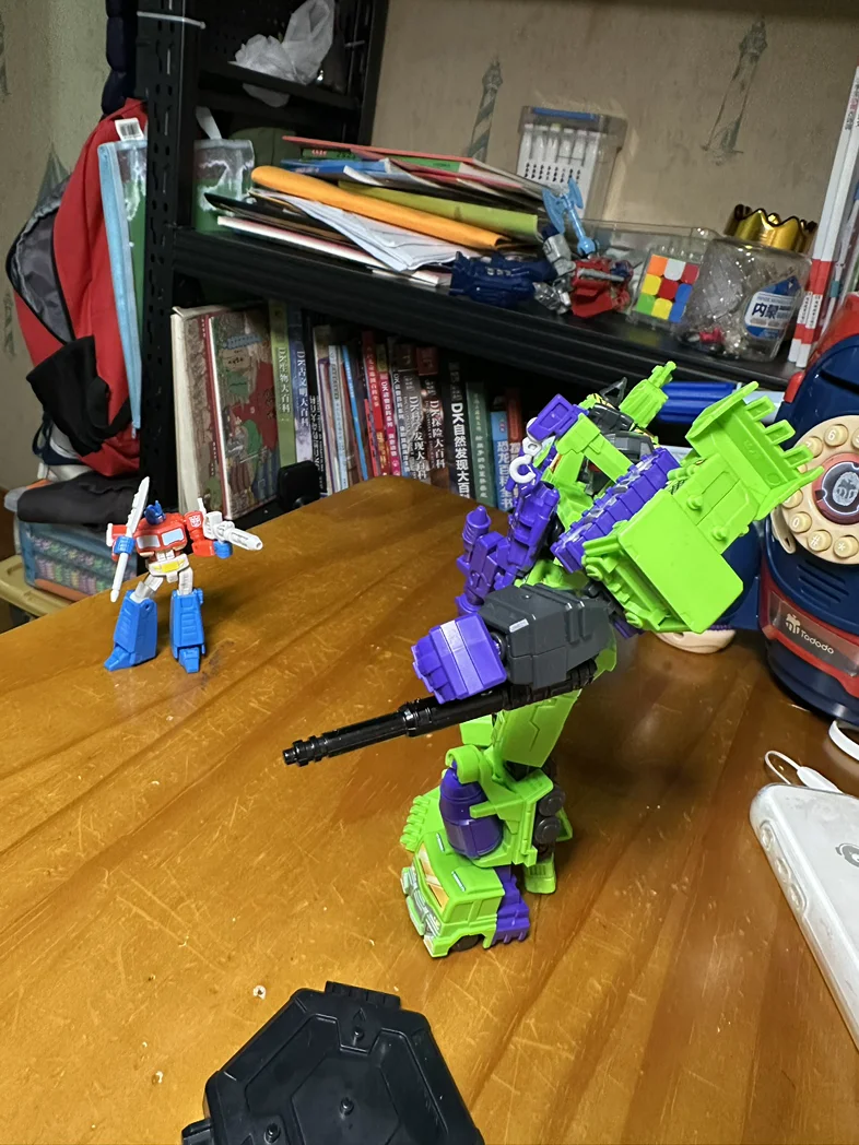 从那天起,我家里,小鹏车里都成了变形金刚的移动基地。副驾的扶手箱里,躺着他陆续集齐的大力神挖地虎们——清扫机、拖斗、吊钩、搅拌机、铲土机、碾压机,每一个都带着独特的涂装和武器。他说,大力神是他小时候最想拥有的组合金刚,现在终于在车和家里“集结”了。