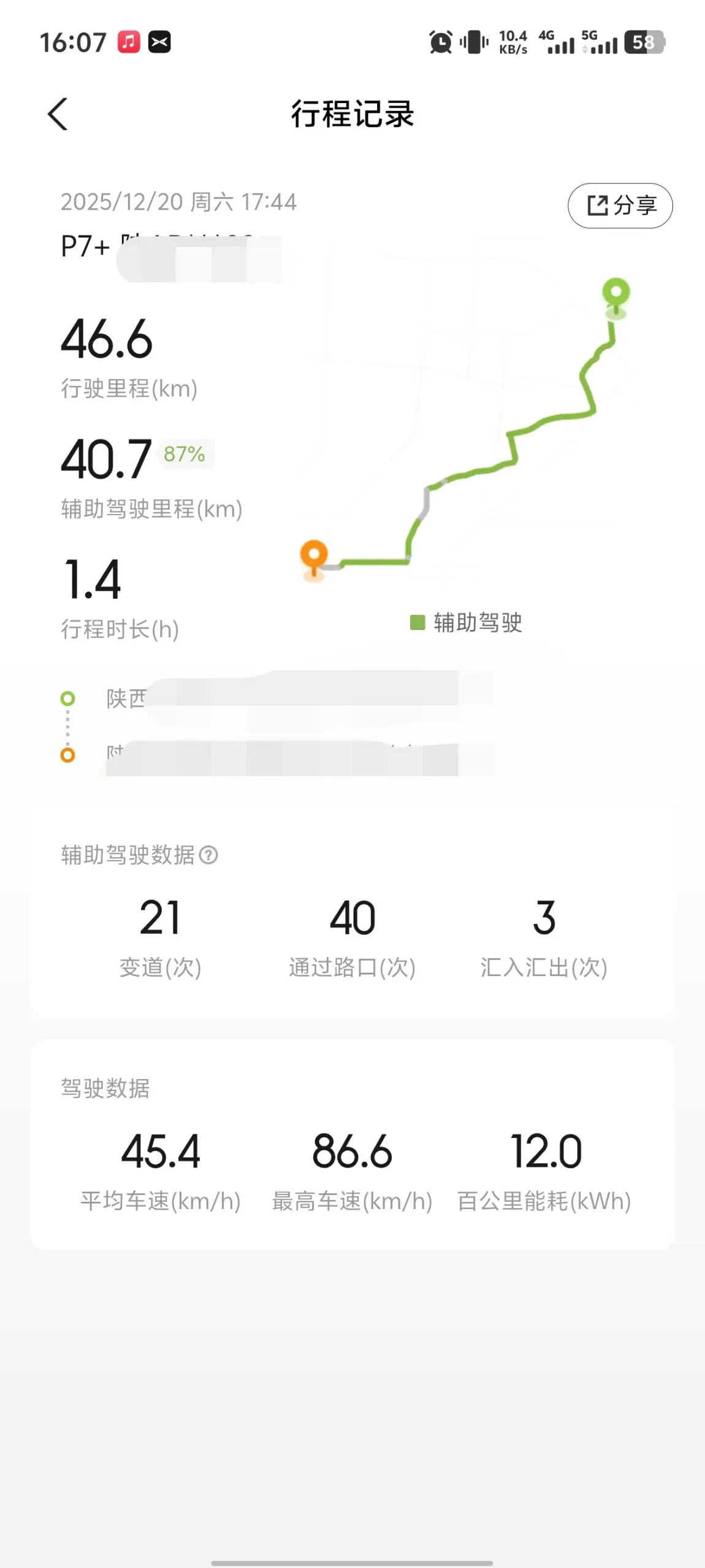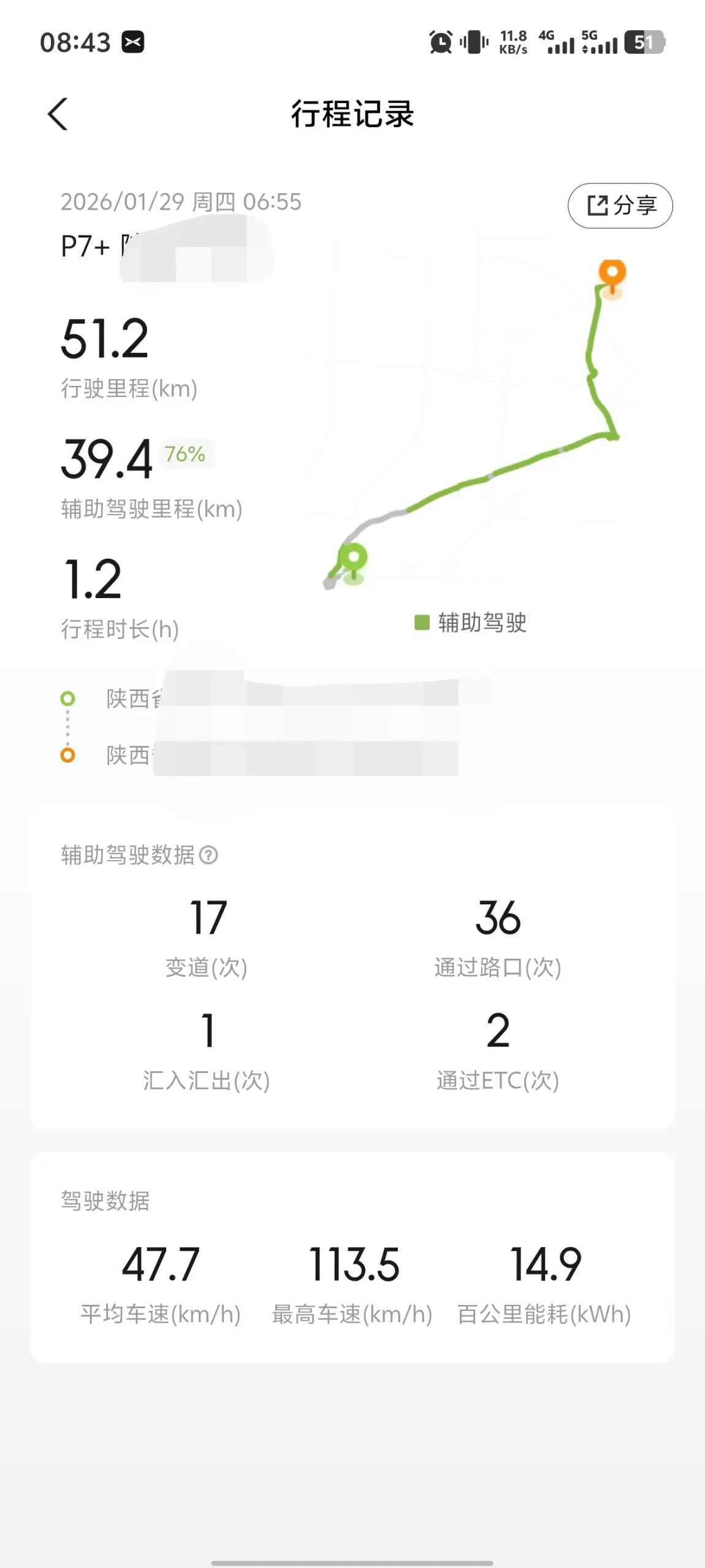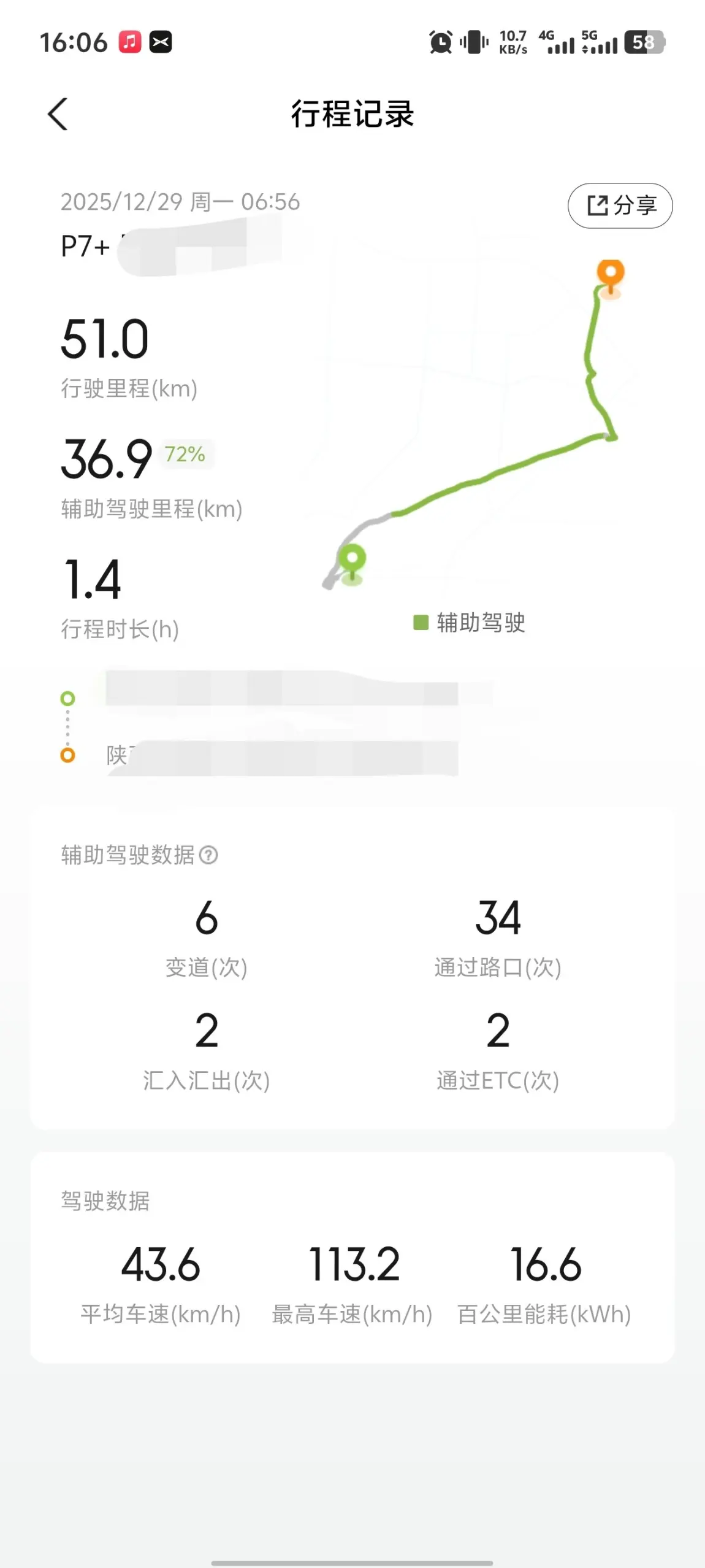 #我的辅助驾驶高光时刻# #开着小鹏回家过年# 上班路上开着NGP辅助驾驶,还是省力又省心的。以下是一些行程的截图,小p把能耗控制的也不错。就是有个问题请教一下大家,手动设置NGP速度高于限速,在经过限速拍照时并没有减速通过,这种情况改如何解决啊。@智驾小助手 @鹏友俱乐部小向导