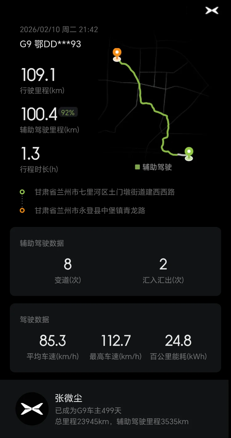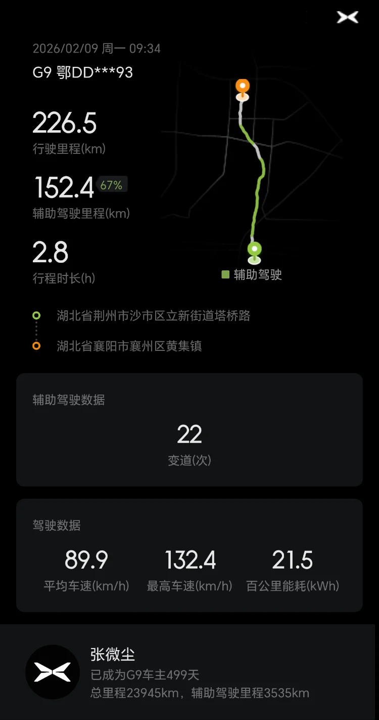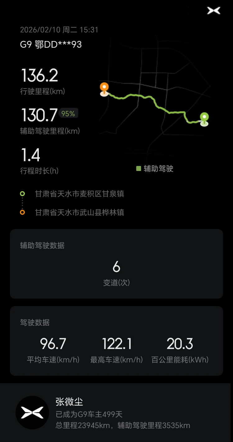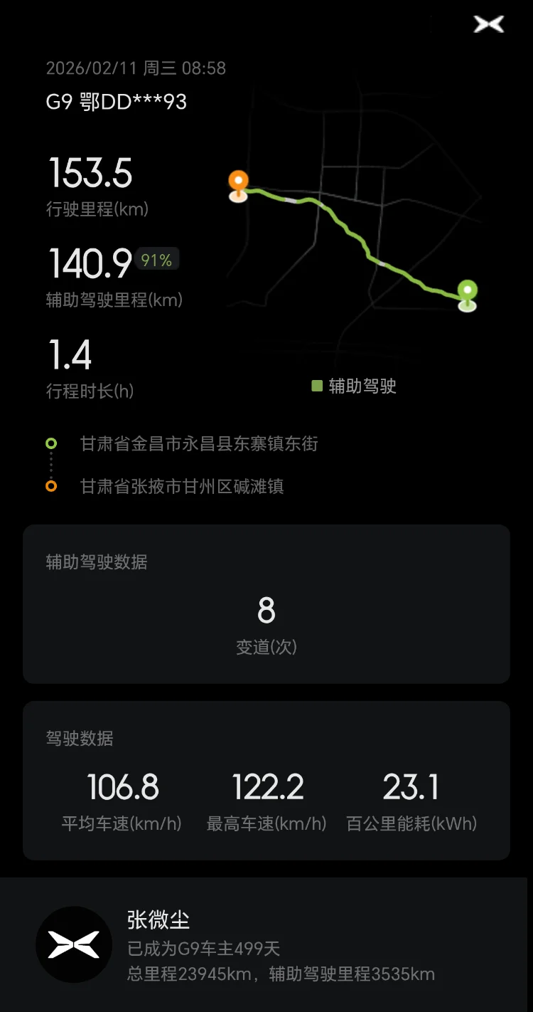 从湖北荆州到甘肃敦煌,全程两千多公里,小鹏G9全程护航,NGP最高达到100%,极大减轻驾驶疲劳,真心点赞!