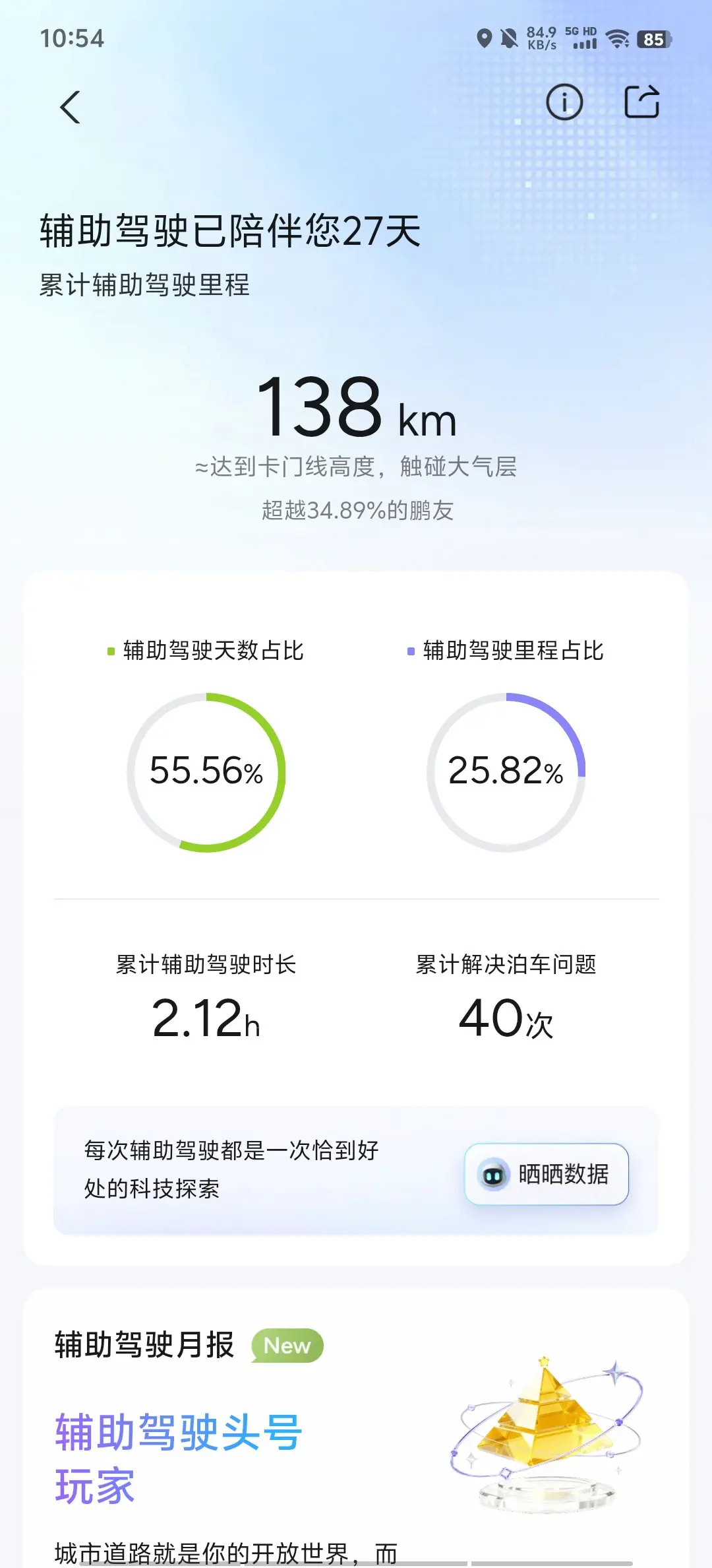 刚提车没多久就已经辅助驾驶100多公里了,哈哈哈,因为是新手真不太会停车,买之前还担心车那么长会不会不好停,这个自动泊车真的很好用,我基本就没自己停过,不管是大车位,小车位,难停的窄的,它都能自己停进去,还能自己再开出来,哈哈哈,过年回家有它省力好多!#开着小鹏回家过年# #我的辅助驾驶高光时刻#