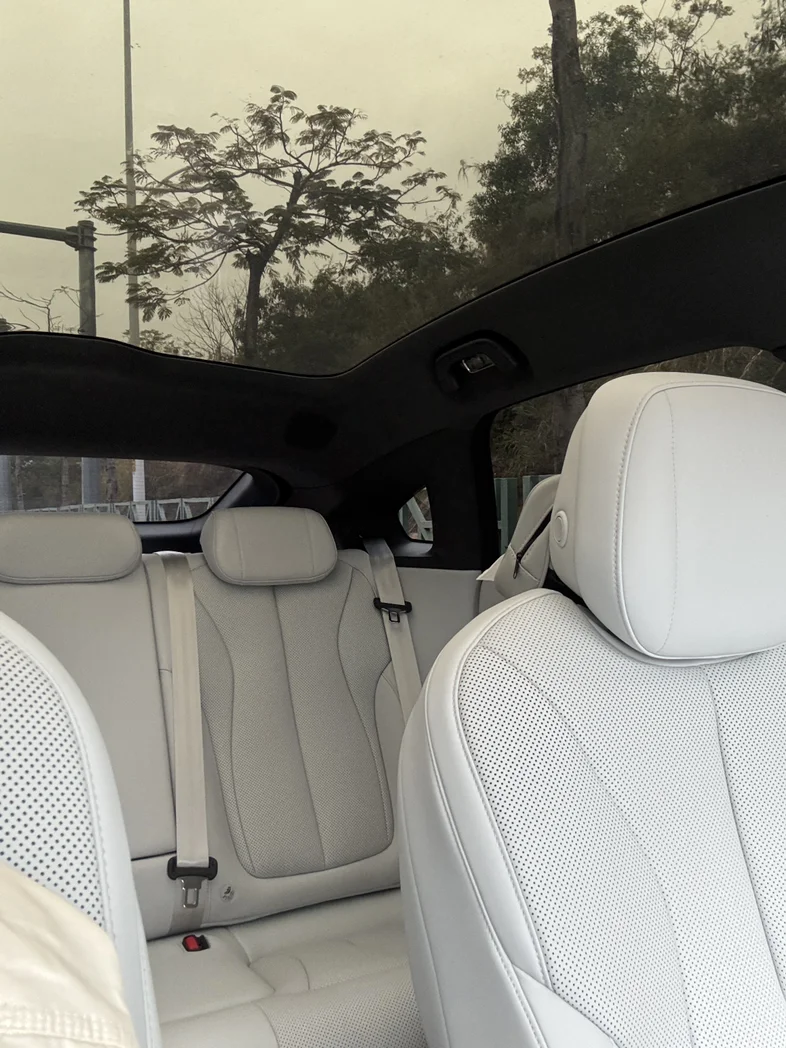 先说说好的。空间是真的夸张,后排跷二郎腿还有富余,后备箱塞了个露营车+两箱水+零碎杂物,还有空。颜值也没话说,无框车门+溜背,停在公司楼下被同事问了好几次。智驾必须夸,跑了两趟高速,XNGP一开基本不用接管,以前开俩小时得歇一会,现在直接一口气干到目的地。