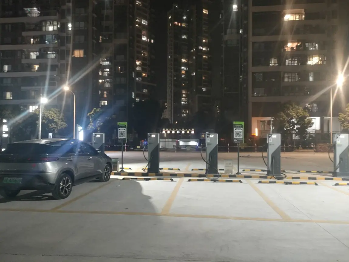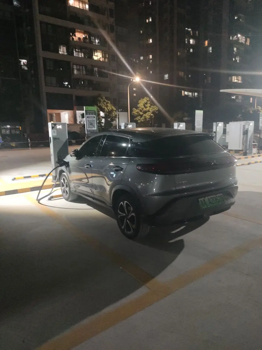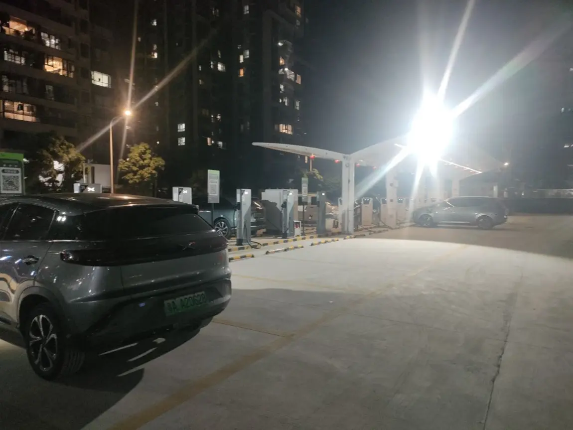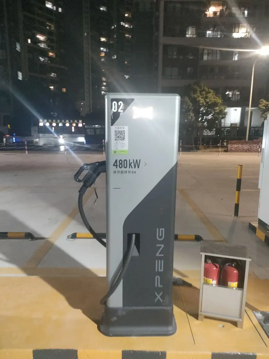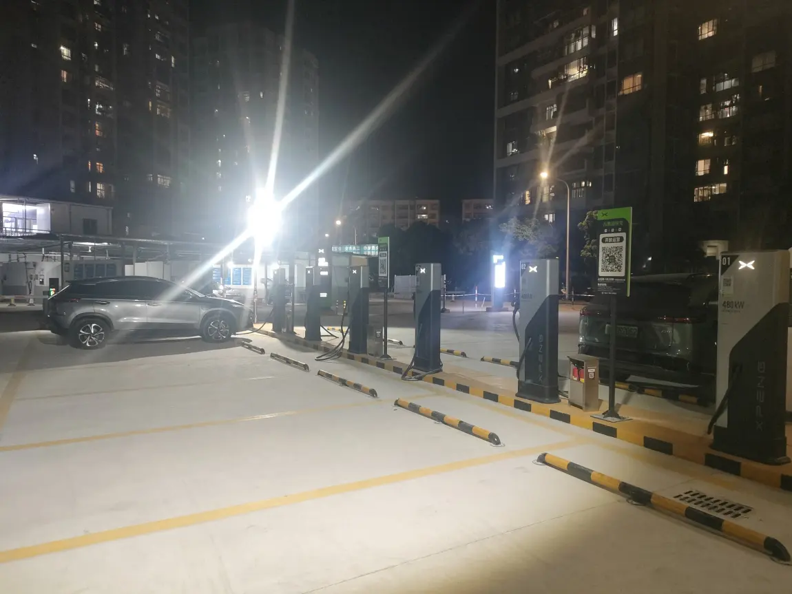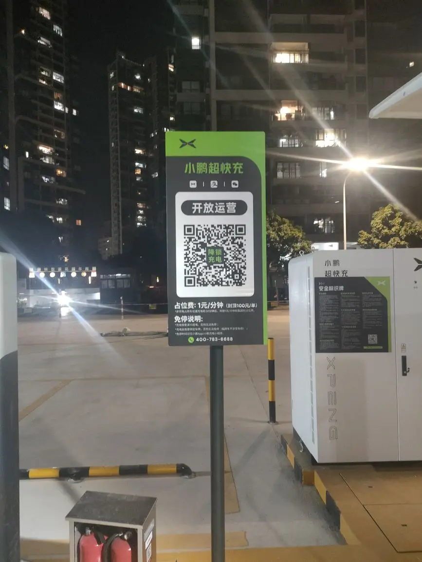 第一次在新会富和苑小鹏超充站,站场很大,进出场很方便,充电电流也足够大,唯一美中不足的是:隔壁的小桔充电桩有瓦遮头,我们小鹏这六支桩为啥不装个遮雨棚?