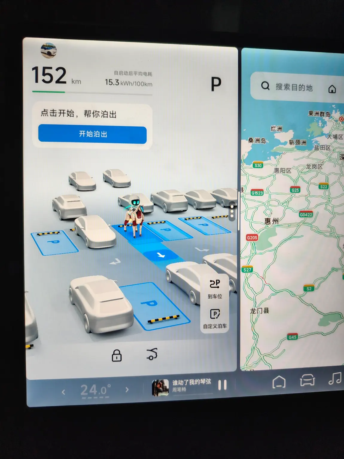 🧘 设置:后排按摩开着,舒服最重要。空调设置到24℃2挡风+外循环。