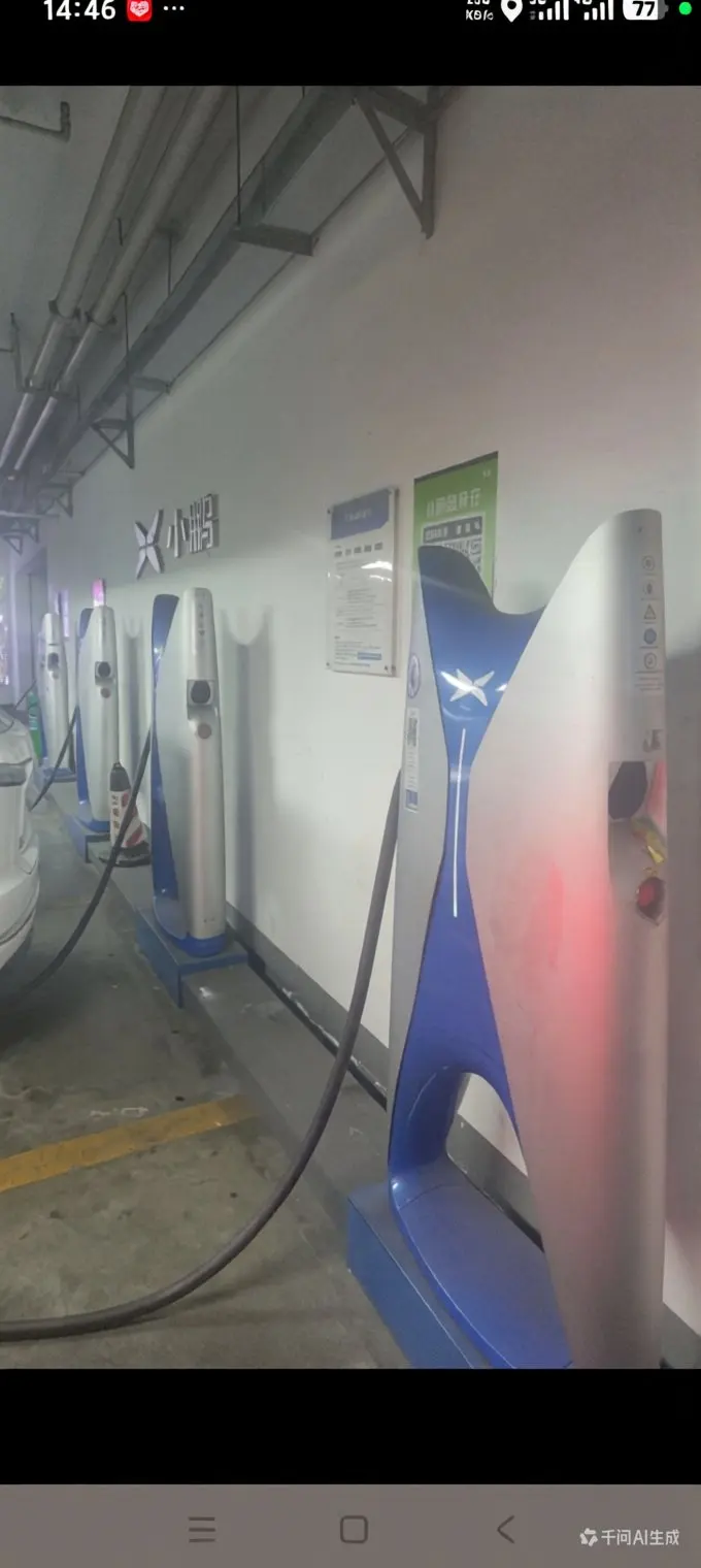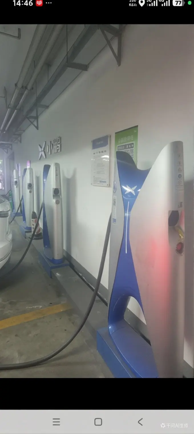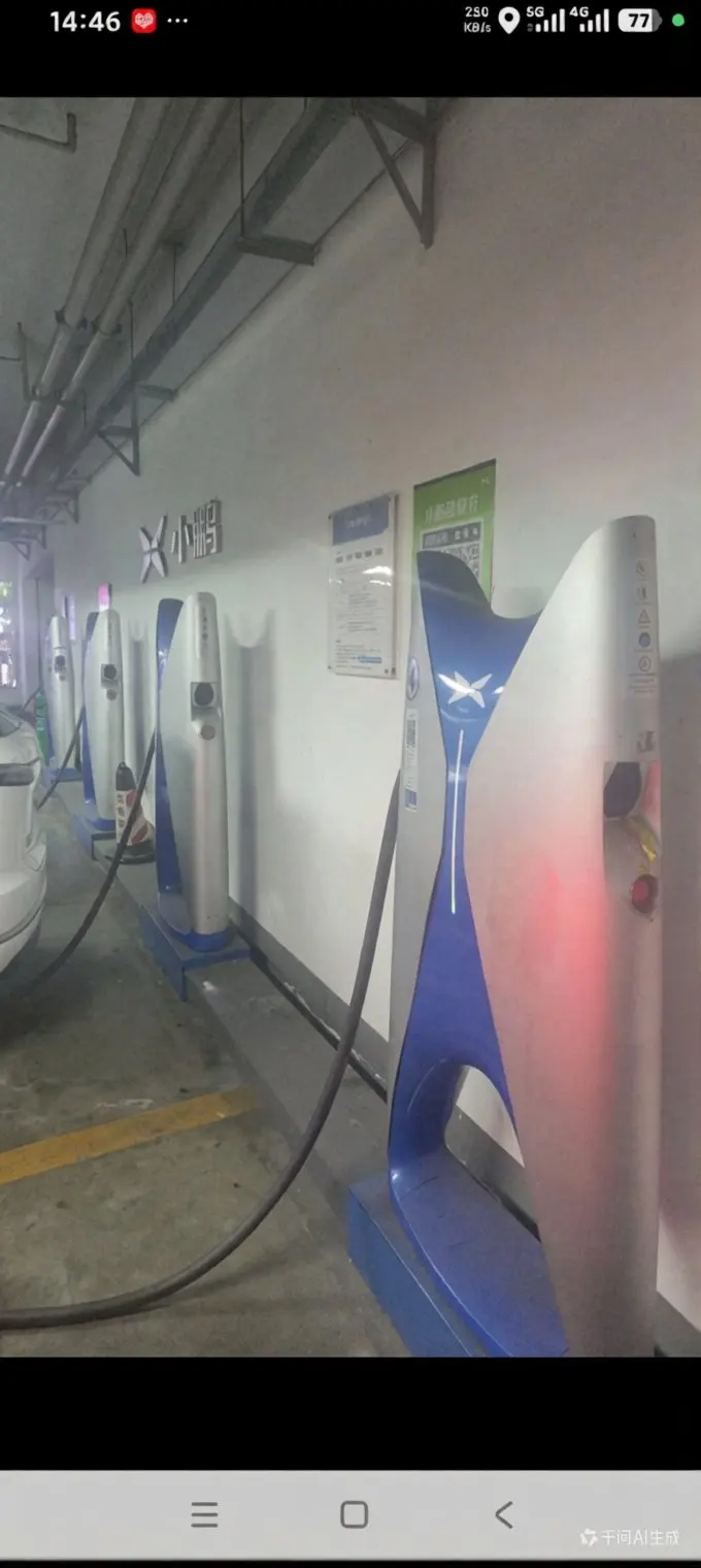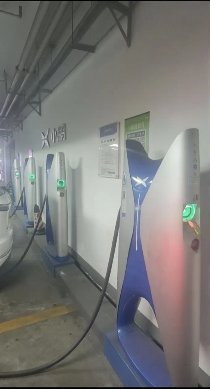 整个充电区环境整洁,充电桩布局合理,地面无明显积水或杂物,给人一种专业、安心的感觉。墙上的“小鹏”标识和醒目的“小鹏超快充”海报,也让我对品牌的信任感倍增。
