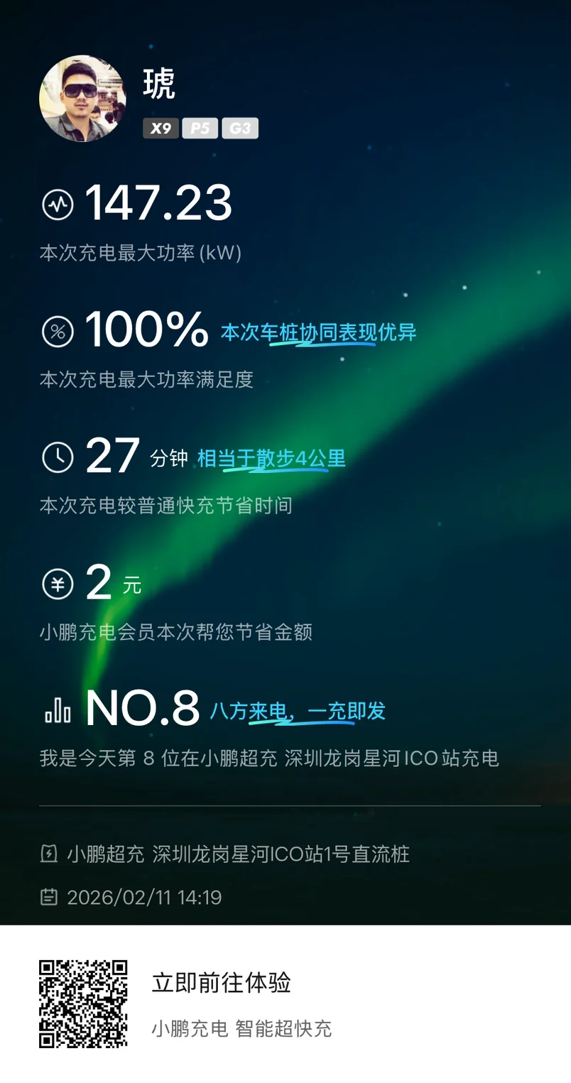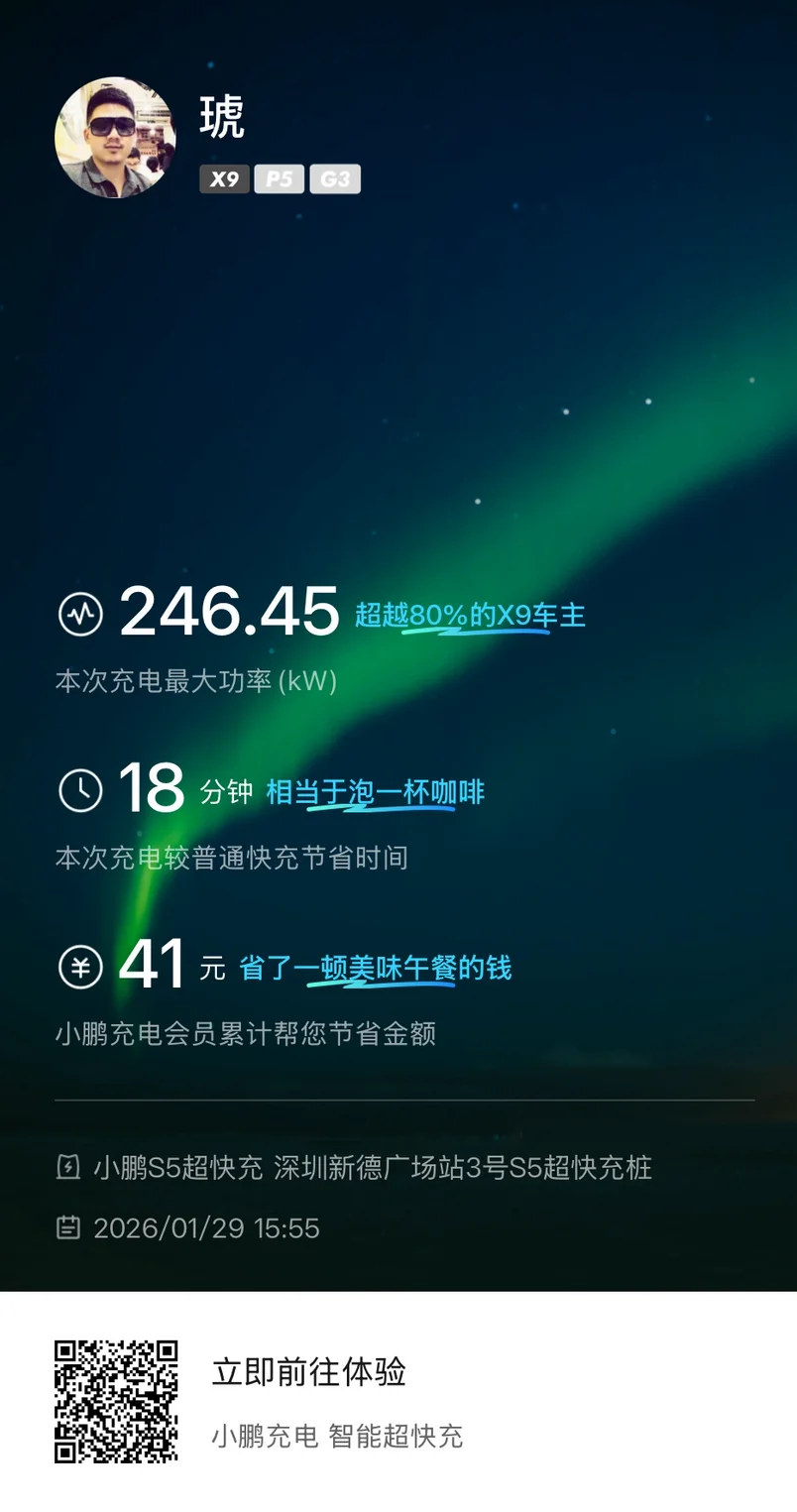 #鹏友充电攻略# #鹏友充电攻略# 选择小鹏的其中一个原因就是感觉小鹏的超充站建设特别给力,家附近周边就有四五个超充站,而且有1500度复购电卡,买一杯咖啡的时间已经补能完成,超级给力,而且都有免费停车福利,买车时候加的半箱油用不了一点!😜😜现在还加入了小鹏的移动充电站行列,互帮互助,这或许就是小鹏的暖心之处吧😎😎