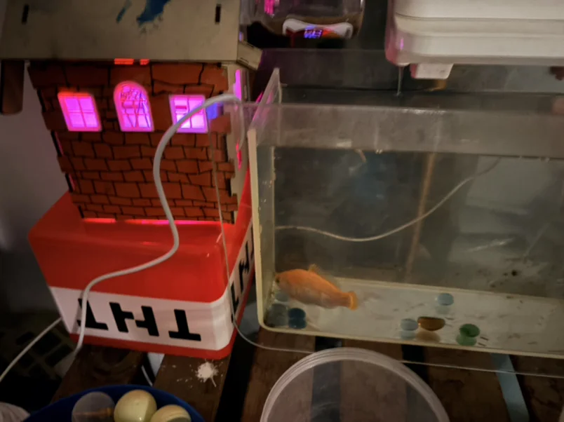 小紫还是挺给力的,一千多公里,中间充电三次都是不到半小时就充到90%,现在高速上的充电桩也是越来越好啦,两次不用等,一次等了五分钟就有的充。给小鱼搭建个自动喂食装置安顿好,但愿节后回来我的小鱼还活着
