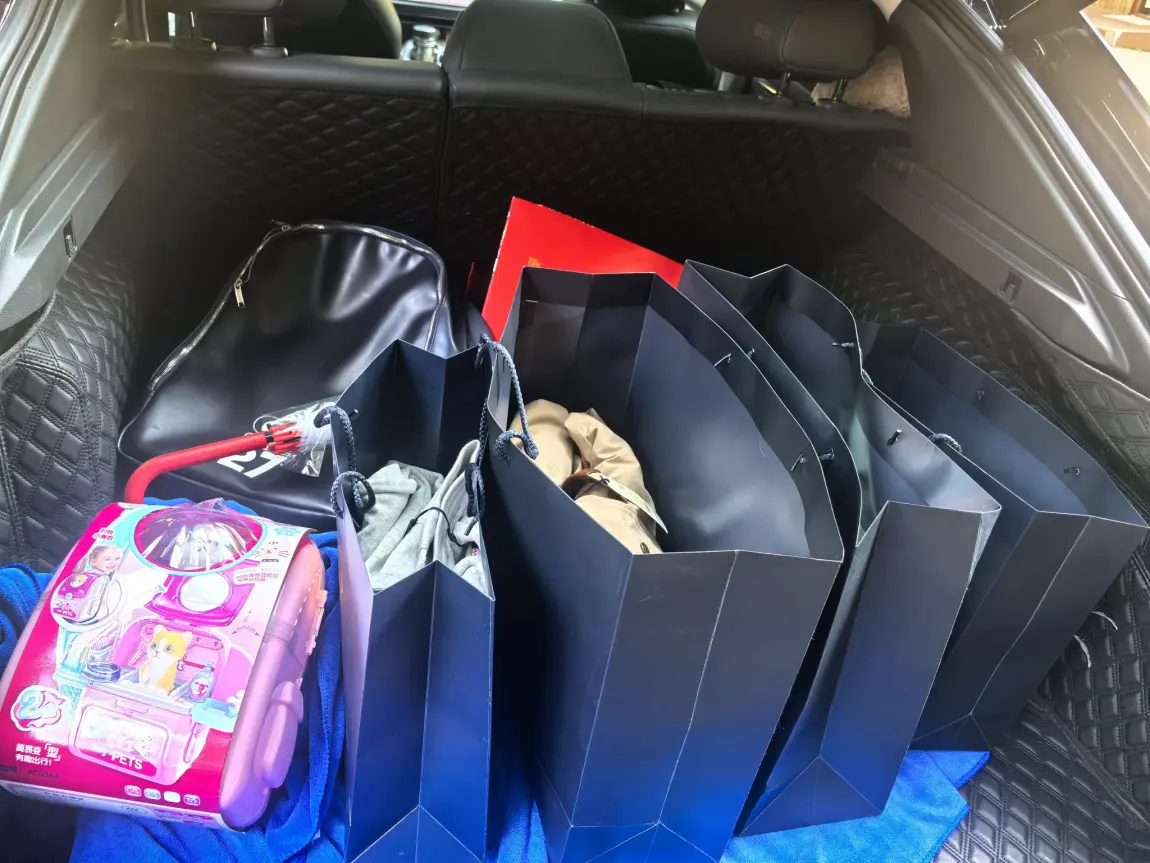 M03的后备箱太满意了,装了一大家子小朋友的新年礼物还能装行李箱,下面的小格子还能装几双鞋子和水,满意100分。
