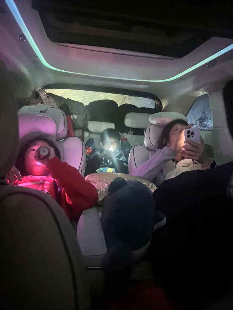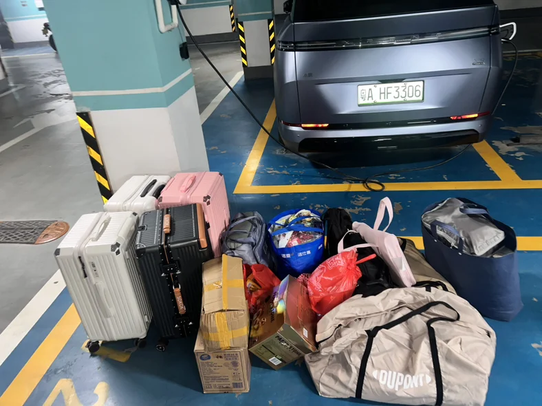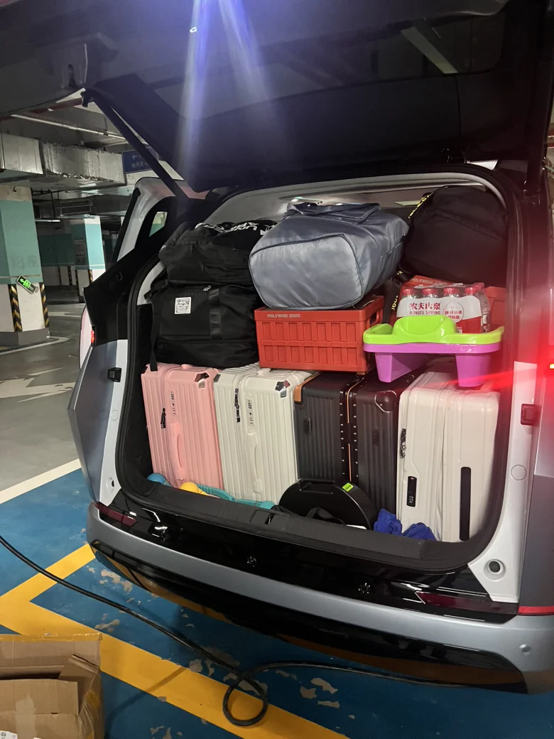 最初以为行李太多X9,放不下,结果全部装下,一家五口的行李,4个26寸行李箱,大包小包一大堆,车上小孩看电影,唱歌,打游戏,也不闹,全程1300公里广东自驾神农架滑雪,全程NGP行驶90%,不太累,如果没有智驾肯定一程开不到!还有增程在整个行程补能没有任何焦虑,在充电时充电桩满桩要排队的时候就直接走有桩就充没桩就用油非常方便,特别适合春节春运高峰期! 长途行驶!非常喜欢X9,特别是一家大小喜欢自驾游的家庭。