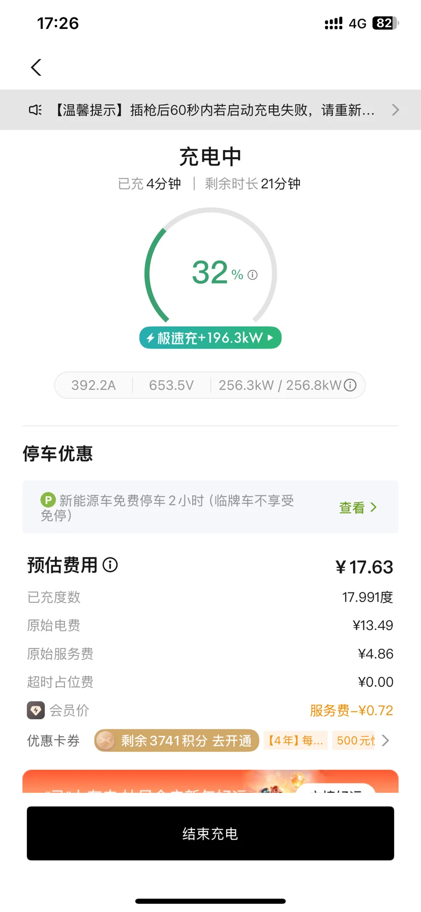 #开着小鹏回家过年# #鹏友充电攻略# 在老家也可以享受到800v的急速冲电,让续航不再焦虑。 这几天没在家冲电,想着年前没啥事了,不用出去了,剩下150公里,应该就够了。今天突然有事要去市里,找了个超冲,半小时就完事了,真的很不错。
