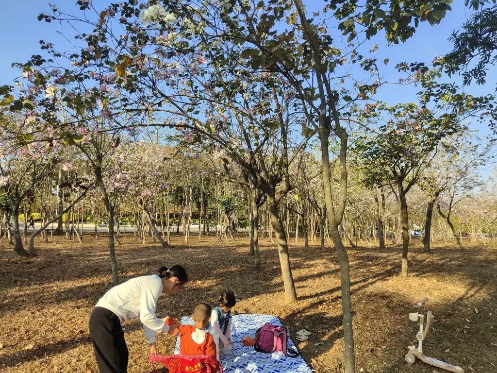 #小鹏汽车 #春节开小鹏X9带家人自驾游#鹏友新春时刻# 马上就到春节假期了,阳光明媚,气温暖和,家里的小朋友一直闹着要开新伙伴X9去玩,于是说走就走,立马带上婴儿车、滑板车、平衡车还有大大小小的零食袋子(X9的后尾箱太能装了),趁着车流人流还不多,路上打开智驾,听着音乐🎶,整个车子都是欢声笑语。到了目的地,本来想试试小鹏X9的露营模式,可是没有找到合适的停车位置,还是搬下来行李,找一块空草地,在满片的紫荆花树上,畅快的吃起各式零食,小朋友滑着滑板车兜转,时间很快就过去了,回程打开二排娱乐屏,小朋友安安静静的就回到家了。这次出游让我对购买小鹏MPV有了更深的体会,期待下一次再次出行~