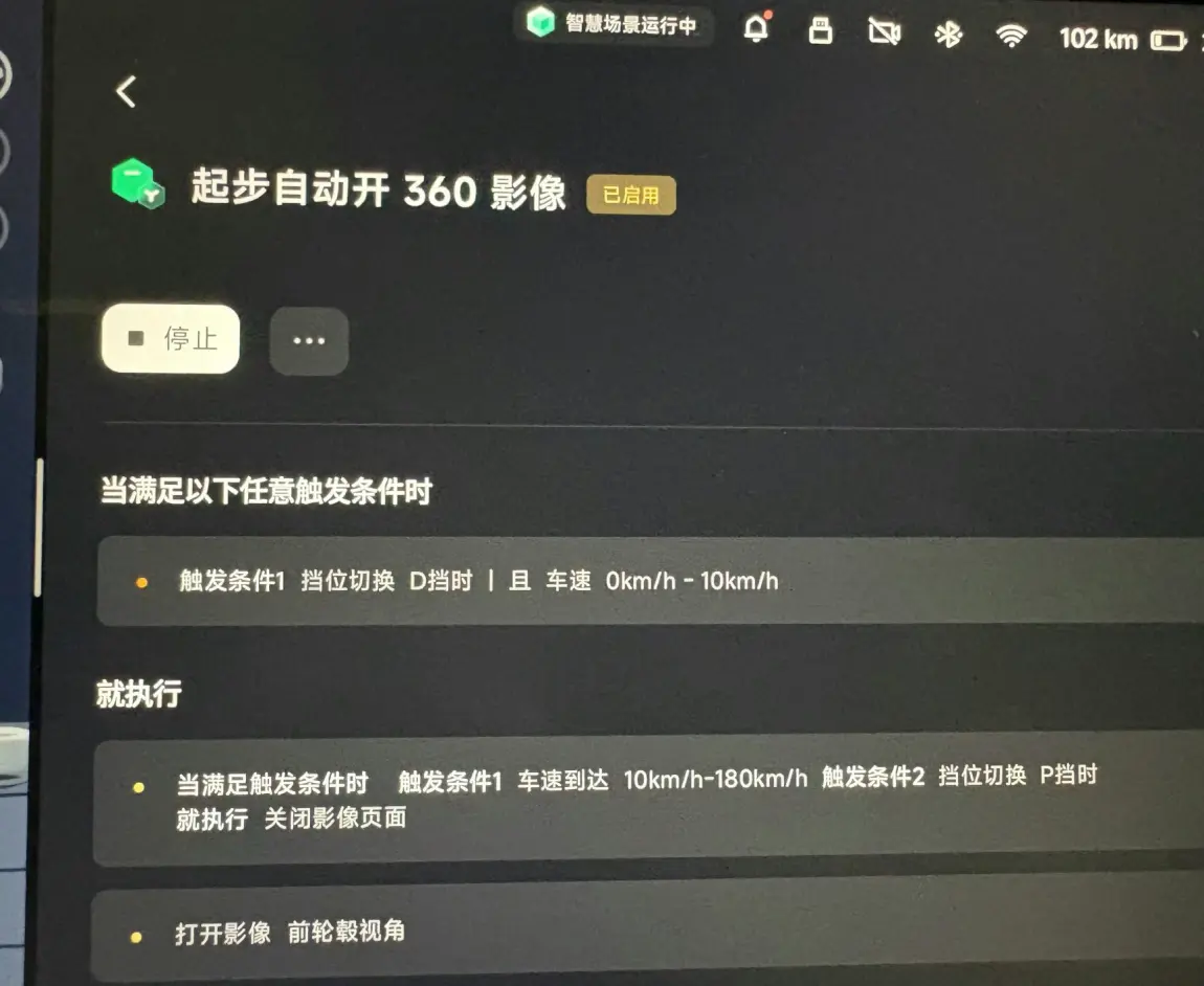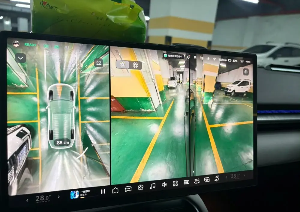 比如创建的「起步自动开启360影像」智慧场景,堪称行车安全的“隐形助手”,当挂入D档且车速处于0-10km/h的起步阶段,系统会秒级唤醒360度全景影像,将车辆四周的环境以高清视角呈现——无论是图中显示的与旁车仅88cm的“贴贴距离”,还是立柱、地锁等细节,都清晰得像“把眼睛贴在地上看路”。最让我“上头”的是它的“无感联动”:不用在紧张起步时分心找按钮,系统会精准判断场景,在你需要的瞬间自动“亮出底牌”。窄库倒车时,它能实时显示车轮与标线的距离;拥堵路段跟车时,能清晰看到前后车的间距;甚至在光线昏暗的地下车库,也能轻松识别角落的障碍物。这种“你未开口,它已懂你”的智能预判,把“安全”和“便捷”揉进了每一次起步的细节里,让驾驶从“手忙脚乱”变成“运筹帷幄”,这才是科技该有的温度!