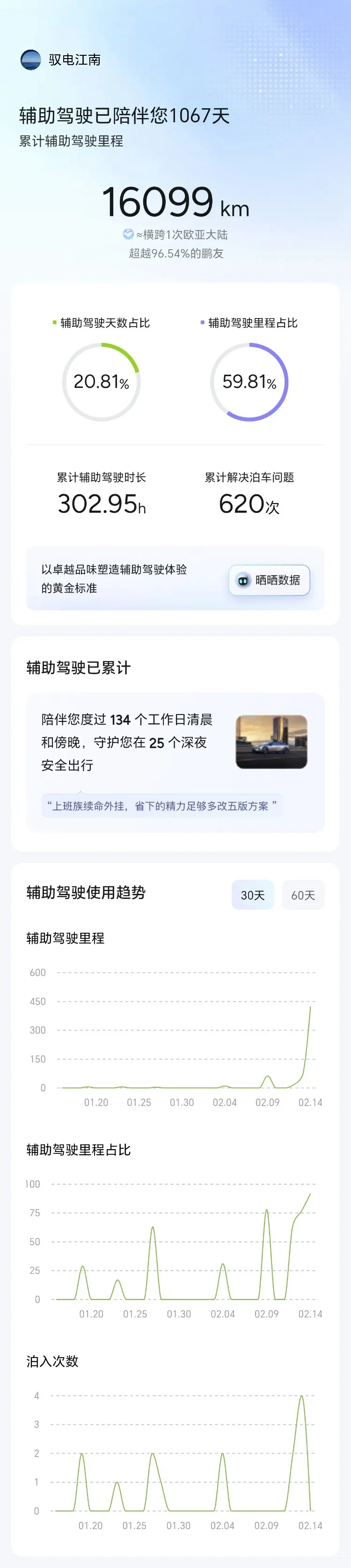 我的辅助驾驶占比60%,总体感觉还可以,我现在是上下班10公里,赶时间,不用智驾。其他陌生的路,怕走错路,放轻松,都开智驾!