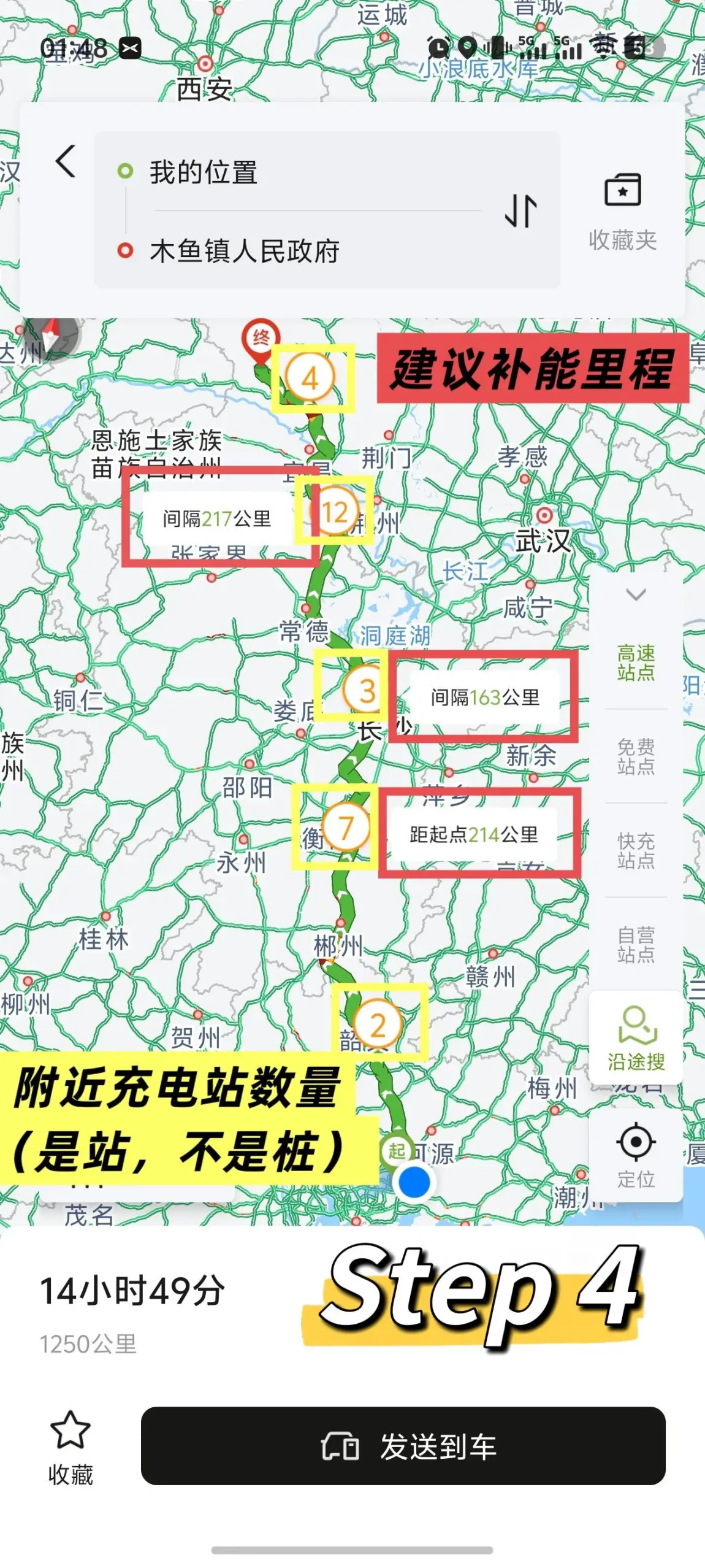 优先选京港澳沿线/郴州市区小鹏S4超充站;出发前满电100%,抵达后剩余电量约35%-40%,补能至80%,S4超充仅需10-15分钟,配合休息完成补能。