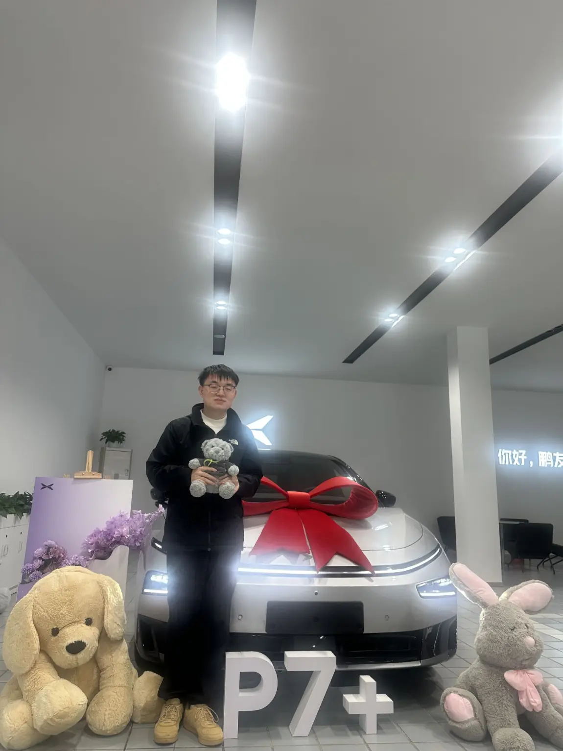 提车仪式感拉满💐 鲜花、小熊、专属交车背景板,工作人员全程耐心讲解,从办手续到验车一条龙超省心,拿到钥匙那一刻幸福感爆棚!