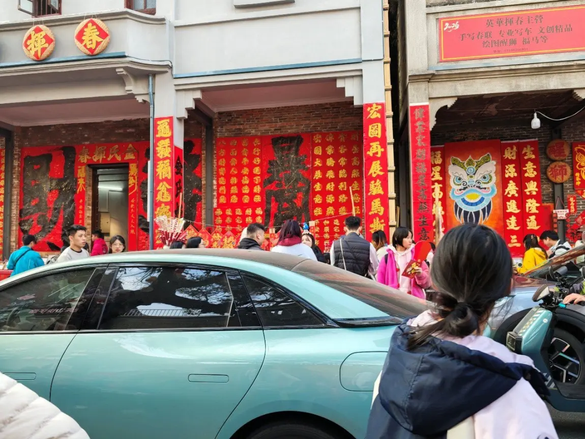 兴致上来了,就去了这个“年味儿”极重的地方。总而言之,这是一条卖各种各样过年用品的街道,灯笼,对联,各种小精品,你说它是步行街的话,我把#小鹏MONA#给开进去了,有很多朋友在这里找老板写上一手好字,你说它不是步行街的话,人山人海,你还真只能步行。