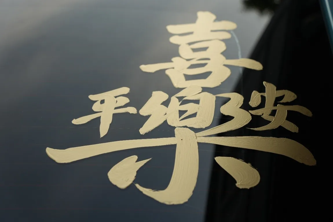 后来终于找了个铺子停下来了,其实我从来没想过要发多少财,我不是不喜欢钱啊,但我不觉得一夜暴富是什么值得期许的事情,我想要的只有“平安喜乐”,老板帮忙写字的时候好多人来围观---大概也是因为快子路的缘故,路上你看到任何车有这样的字样你不会觉得稀奇,唯独在这个写字的现场,就有那么多游客驻足。