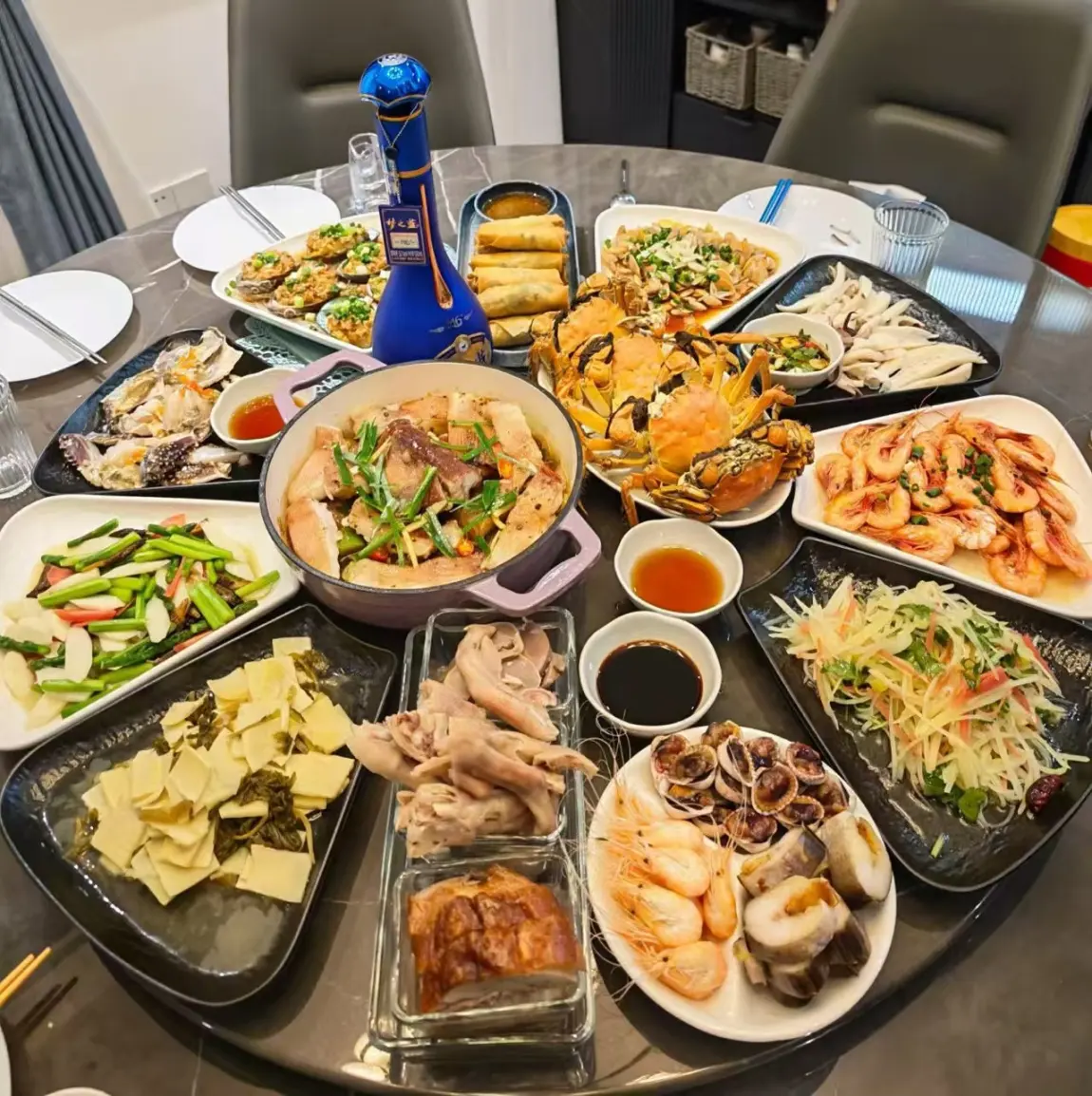 除夕夜,万家团圆,年糕、汤团、饺子,各地传统的年俗主食已经备齐,满满一桌子年夜饭已经准备停当,甩开肚子吃起来,策马扬鞭赴山海。