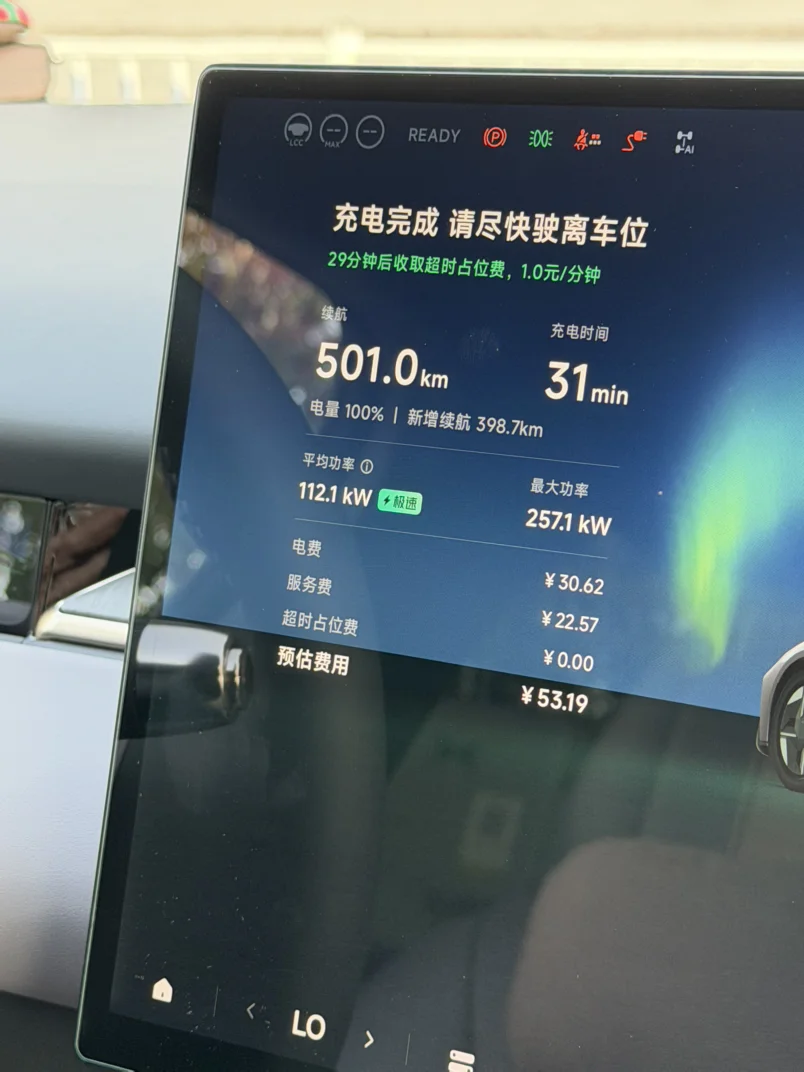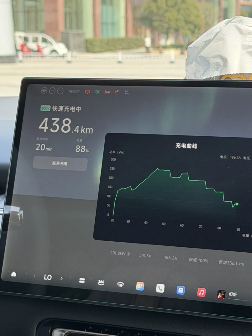 这充电可太神速了,12分钟冲到80%,800v平台就是快呀,充电半小时,续航500km,实际能跑400左右,杠杠滴
