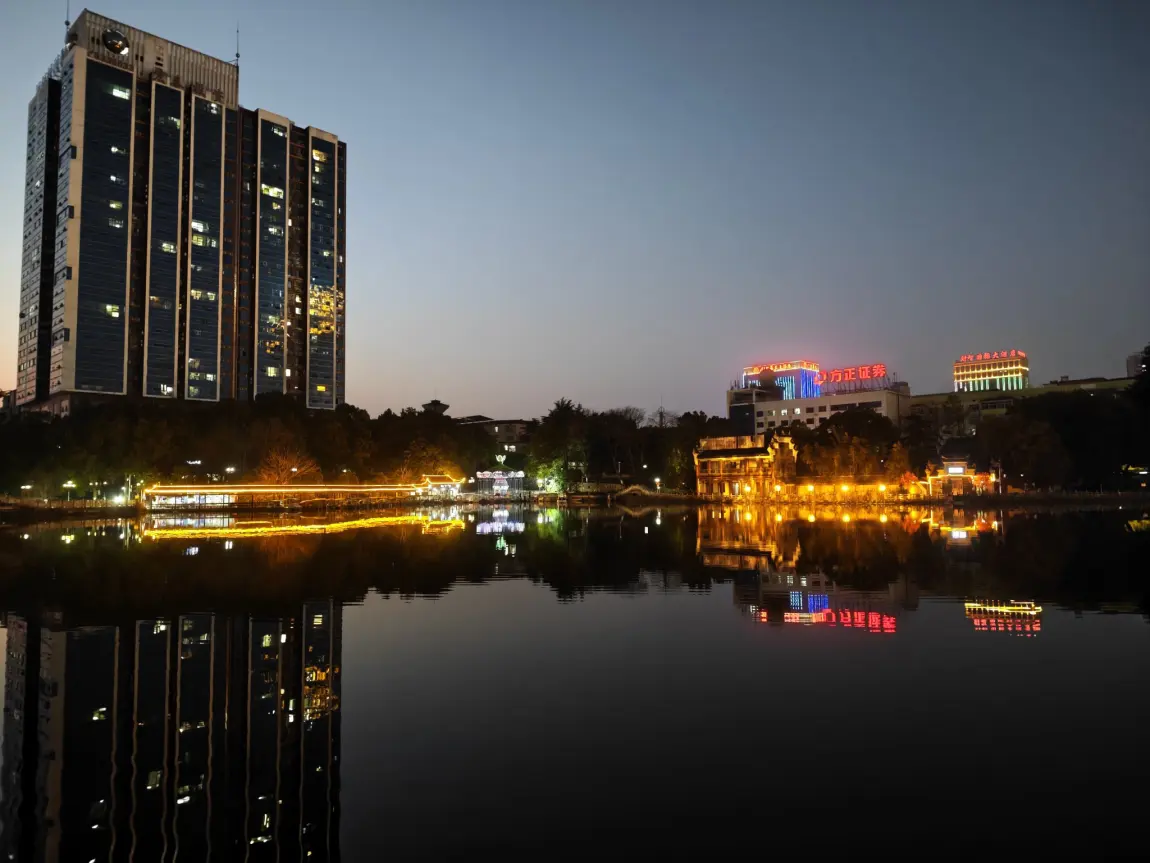 今年到湖南我女朋友家这边过年啦,晚上出来散步夜景很美,湖南的美食很多也都很好吃,很开心的旅程!
